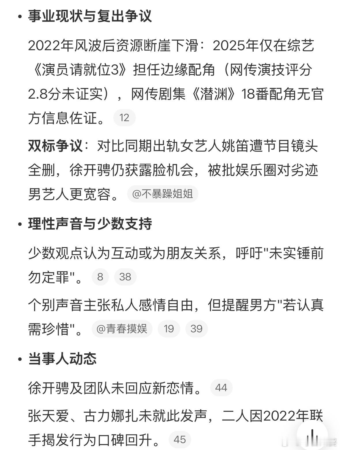 疑似徐开骋新恋情看到热搜第一反应:徐开骋?这名字好久没见了…点开一看,好家伙,评论区全是“爱宝”、“惯犯”、“吞针”。新恋情没人在意