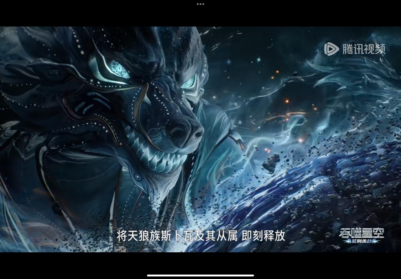 还有人问了尊者就不能拼一下吗?!拜托,人家是宇宙之主,你就算两个尊者自爆了,人家顶多伤一根毫毛,但是激怒天狼之主的后果就是兠冦种族全部灭亡。天狼之主还是好心的提醒了一下,也不算啥好心)我天狼族有人被你们关进了冰狱之中,你把它放出来,我可以既往不咎,要不然的话,有你们好果子吃,但是你别说这个天狼之主的形象确实巨大,一个身子或者是一个脑袋,就可以吞掉一颗星球,兠冦种族居住的那个星球,搞不好天狼之主一个爪子就能弹走