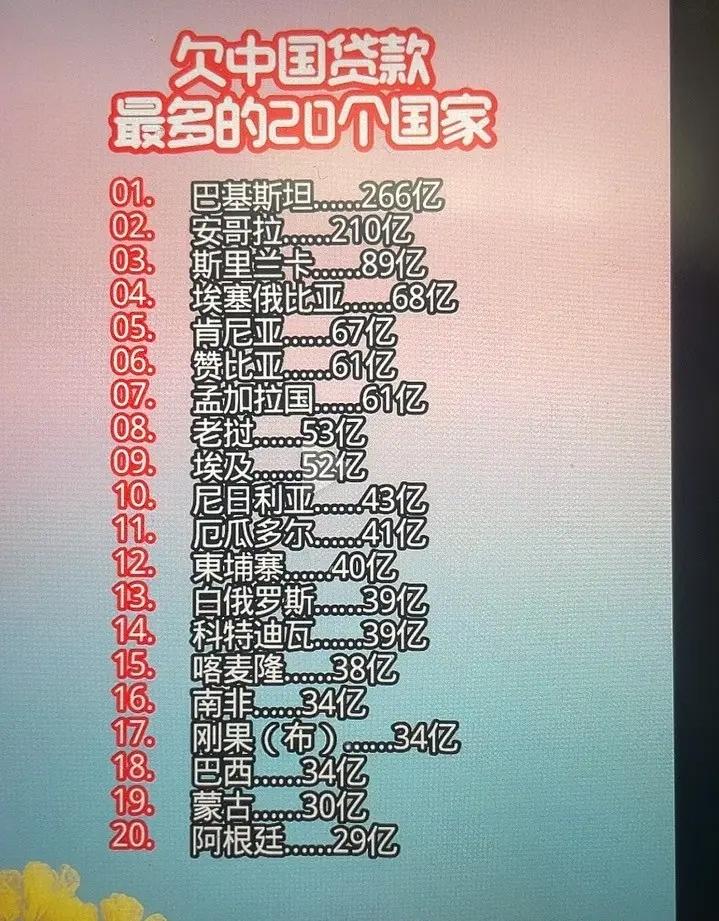 中国该捂紧钱包了 看了这二十个国家千亿外债欠着不还,二十多个 穷国的账单真让人堵心!咱们的 钱可不是大风刮来的,是无数普通人起早贪黑挣来的,是多少家庭省吃俭用攒出来的。 这些国家拿着贷款搞基建,咱们没图啥额外好处,可有些不仅不按时还钱,还反过来摆脸色,简直让人寒心。国内还有不少地方需要花钱,乡村振兴要投入,民生保障要完善,老百姓的日子还得往更好里过,这才是最该优先考虑的事。 对外帮扶得有底线,不是无条件当“冤大头”,靠谱的合作才叫共赢,喂不熟的白眼狼不值得迁就。国家富强的意义,不就是让自己人过上踏实日子吗? 你觉得对外借钱该设哪些硬规矩?来评论区说说你的看法!