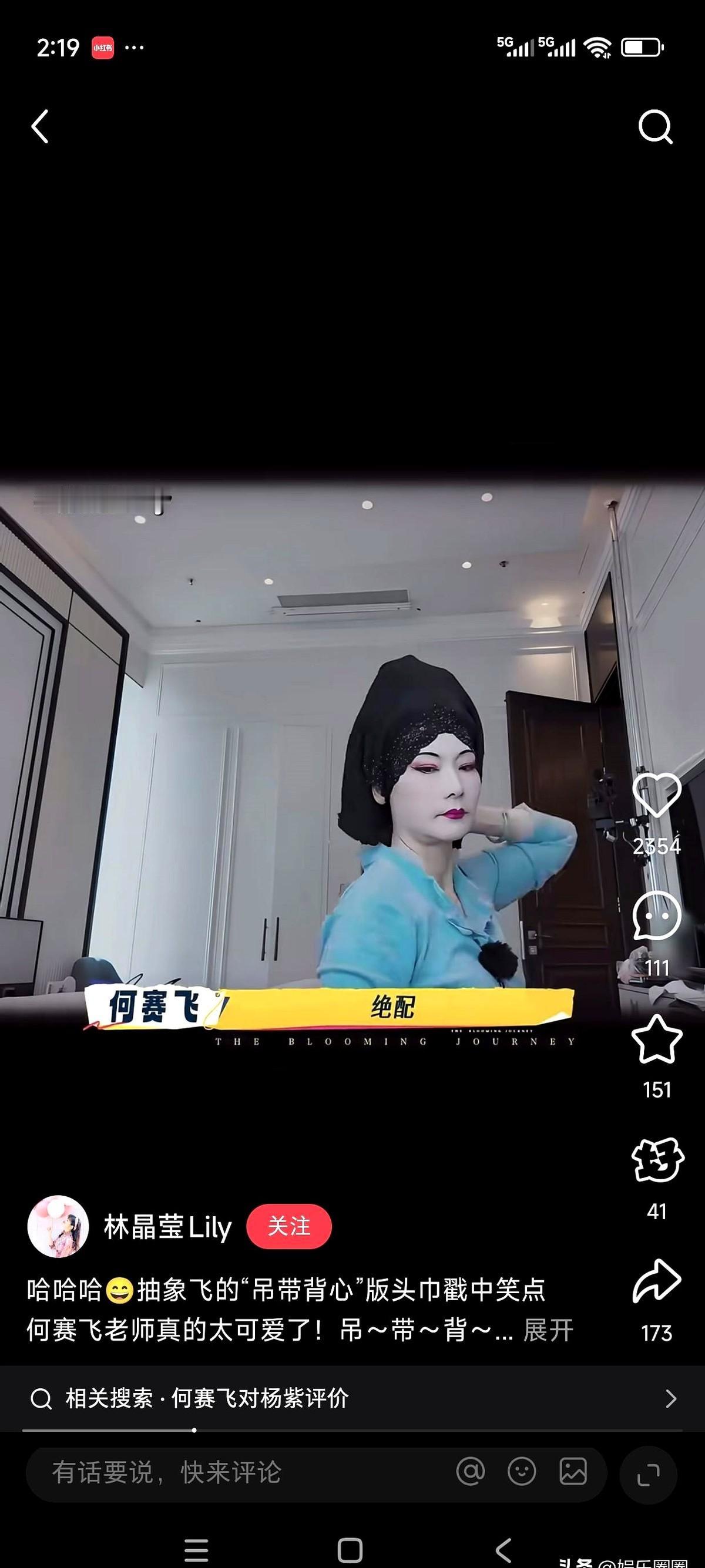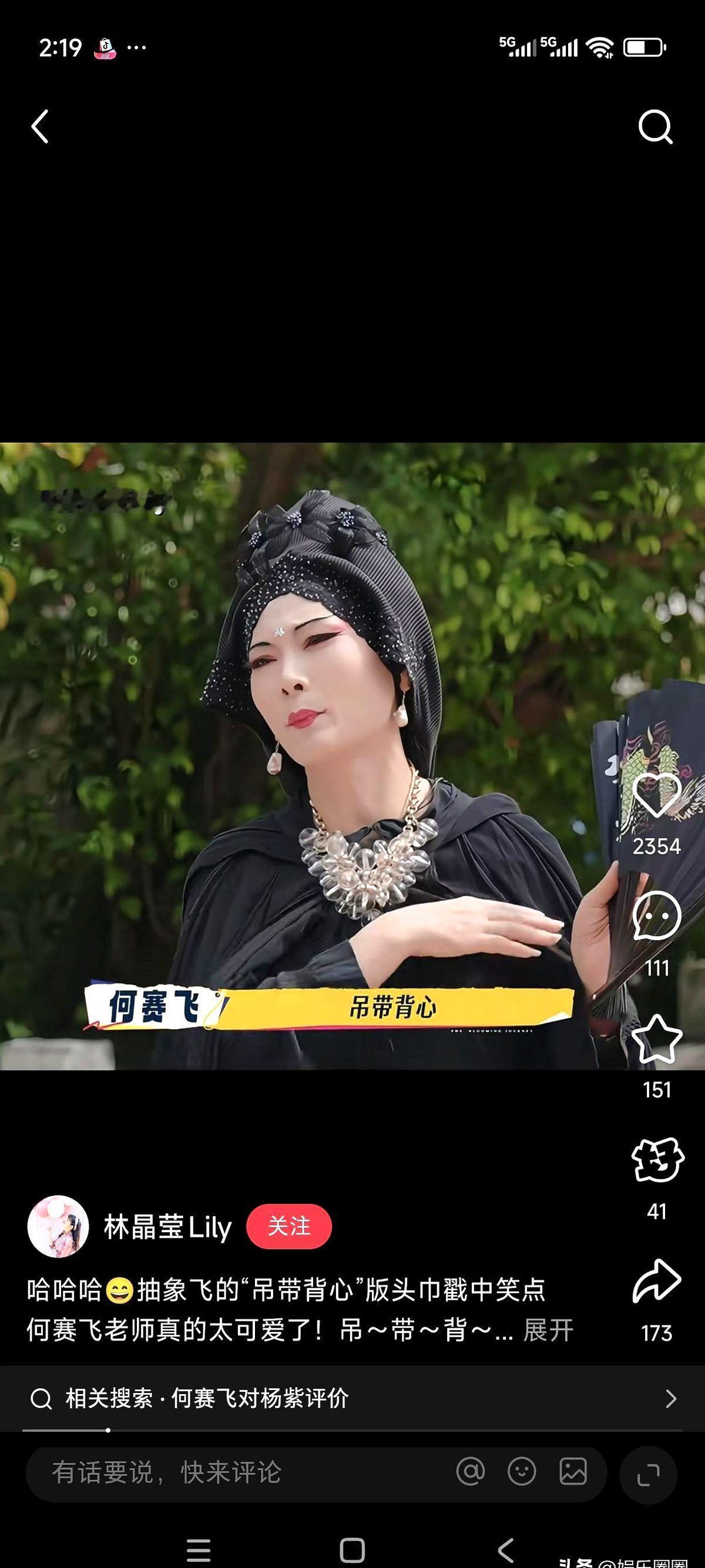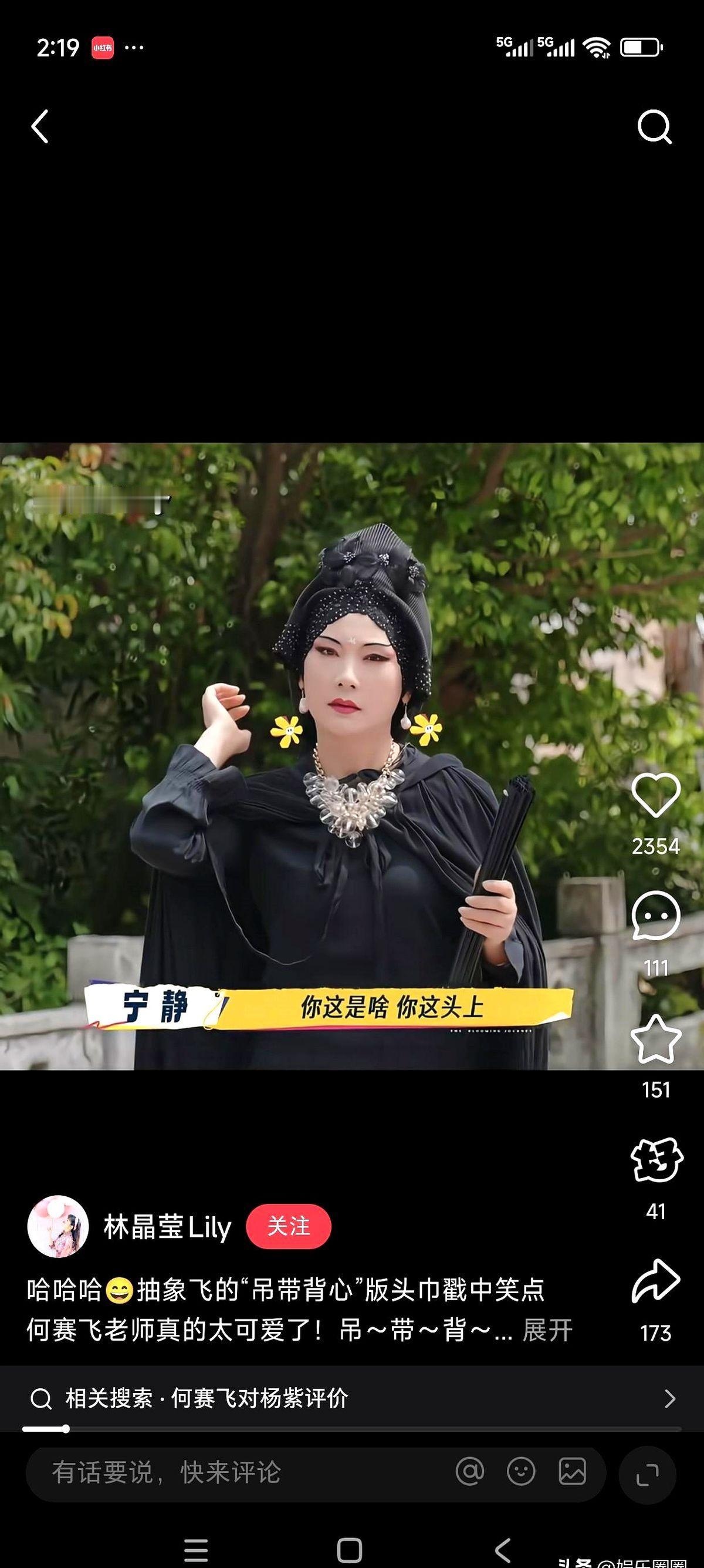 何赛飞老师真是太逗了,刚拿了影后就顶着吊带背心出街! 说的是她最近一个造型,头上那个装饰品,居然是一件吊带背心叠起来的。妆容还是自己画的,整个感觉又随意又独特,一下子就火了。 这位63年出生的越剧表演艺术家,平时看着特优雅,没想到私下这么会玩。她1984年演《五女拜寿》就出名了,是正经的国家一级演员,搞这么一出,反差感拉满。 这事儿其实特能反映她的性格,直来直去,不爱被条条框框束缚。这份自信,这份自信真不是谁都有的。去年刚凭《追月》拿下金鸡奖最佳女主角,今年在《承欢记》里表现又那么好,事业巅峰,心态自然松弛。 在人人都追求精致完美的娱乐圈,她这种“好玩就行”的DIY精神,显得特别真实。不是作秀,就是纯粹的随性。 这一下让大家觉得她更亲切了。 演技在线,性格有趣,这样的老艺术家谁不爱呢。这波操作,又圈了一波粉。