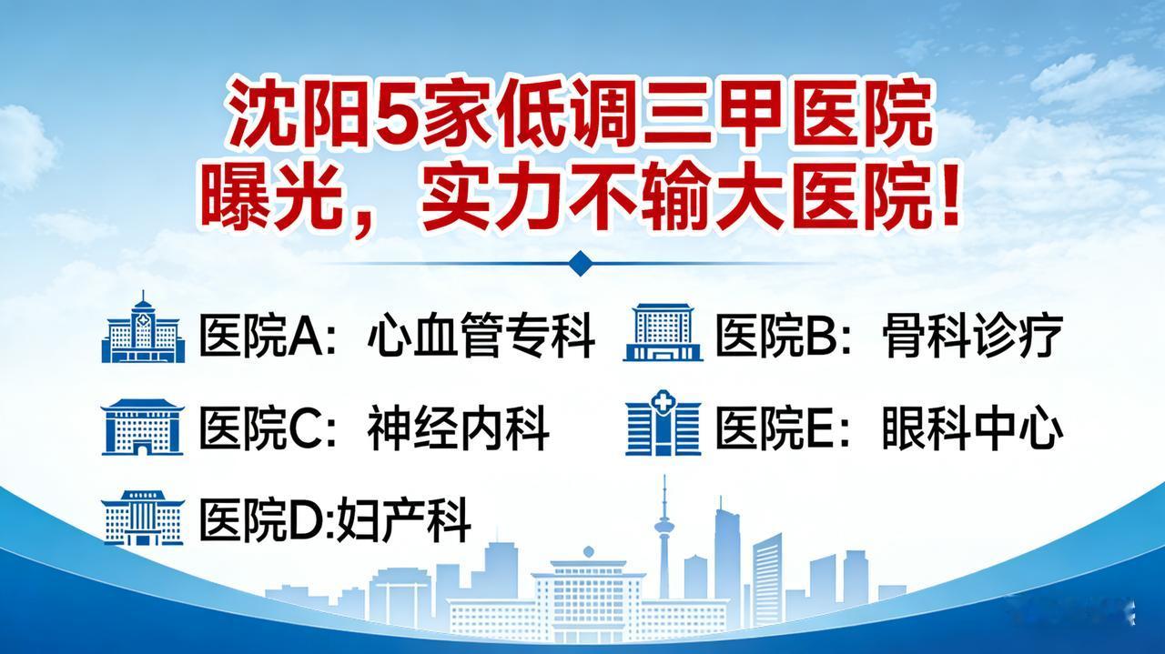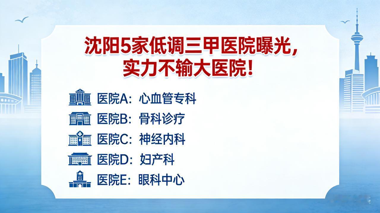 沈阳 5 家低调三甲医院曝光,实力不输大医院! 沈阳“隐世”的5家三甲医院:低调藏锋芒,实力破苍穹 在沈阳这座医疗资源星罗棋布、名院云集的城市,除了那些声名如雷贯耳、患者熙熙攘攘的顶尖医疗殿堂,还有几家宛如隐匿于繁华喧嚣背后的“宝藏”三甲医院。它们不事张扬,低调地散发着独特的光芒,在各自的医学领域深耕细作,以超凡的实力为无数患者驱散病痛的阴霾,带来康复的曙光。 ------ 沈阳医学院附属中心医院:创伤急救的“守护神” 沈阳医学院附属中心医院,宛如一座坚不可摧的医疗堡垒,矗立在城市的一角。它是市属大型综合性三甲医院,在创伤急救、消化内科、内分泌科等专科领域声名远播。这里拥有5个省级重点专科,构建起了一套完备且高效的急诊急救体系,创伤救治成功率在省内名列前茅,堪称创伤急救领域的“守护神”。 曾有一位工人在工地作业时,遭遇了飞来横祸,手指不幸全部断裂。在其他医院,医生无奈地告知他接活希望渺茫,那一刻,他的世界仿佛陷入了无尽的黑暗。然而,当他怀着最后一丝希望转至沈阳医学院附属中心医院时,命运的天平开始向他倾斜。医生们凭借着精湛绝伦的技艺,尤其是那精细入微的神经缝合技术,如同巧夺天工的工匠,让断裂的手指重新“起死回生”。如今,这位工人又能像正常人一样生活、工作,他的脸上重新绽放出了灿烂的笑容,而这背后,是医院医生们无数个日夜的钻研与付出。 沈阳市第四人民医院:眼科领域的“璀璨明珠” 沈阳市第四人民医院,在眼科领域宛如一颗璀璨的明珠,散发着耀眼的光芒。作为设有辽宁省眼科研究所的医院,它在青光眼、白内障、眼底病等眼科疾病的治疗上积累了丰富的经验,白内障手术量更是位居全市前列。 有一位患者,眼睛问题极为复杂,如同被层层迷雾笼罩,多家大医院都表示治疗难度极大,患者几乎陷入了绝望的深渊。然而,当他来到沈阳市第四人民医院时,这里的专业医生如同明亮的灯塔,为他指引了希望的方向。医院分科细致入微,针对患者的病情进行了深入的研究和精准的诊断,制定了个性化的治疗方案。经过一段时间的治疗,患者的眼睛逐渐恢复了光明,重新看到了这个五彩斑斓的世界。这一奇迹的背后,是医院医生们对眼科事业的执着追求和不懈努力。 辽宁中医药大学附属医院:中医传承的“创新先锋” 辽宁中医药大学附属医院,是东北地区大型综合性三甲中医院中的佼佼者,宛如一座传承与创新并重的中医殿堂。在中医内科、外科、针灸推拿等方面,它以显著的疗效赢得了患者的广泛赞誉和信赖。 有位邻居,被腰疼折磨了多年,四处求医问药,尝试了各种西医治疗方法,但效果都不尽如人意。他的生活被腰疼搅得一团糟,痛苦不堪。然而,当他来到辽宁中医药大学附属医院,喝了两个月中药后,奇迹发生了,腰疼的症状明显好转,他又重新找回了生活的活力。医院不仅坚守着中医的传统精髓,还积极引进现代医学技术,实现了中西医结合的完美融合,如同在古老的中医长河中注入了新的活力,成为中医传承与创新的先锋。在中医圈里,它凭借着卓越的实力排名前十,声名远扬。 中国医科大学附属第四医院:百年老院的“实力新锐” 中国医科大学附属第四医院,虽名字不如一些医院那般响亮,但它却是一所拥有百年历史的老院,宛如一位历经沧桑却依然充满活力的智者。它的眼科和泌尿外科尤为突出,在医学领域独树一帜。 医院以多学科综合治疗为特色,不断打造优势学科,如同一位技艺高超的工匠,精心雕琢着每一个学科,使其不断发展和壮大。在社会声誉与影响力的舞台上,它正与日俱增,如同初升的太阳,散发着越来越耀眼的光芒。它用实力证明,即使低调,也能在医学的天空中绽放出属于自己的绚烂光彩。 沈阳市红十字会医院:多元特色的“健康港湾” 沈阳市红十字会医院,宛如一个温馨的健康港湾,在创伤急救、老年病管理、康复医学等方面独具特色。它长期与国内外医疗机构开展广泛的合作,如同一位虚心好学的学生,不断汲取先进的医疗理念和技术,持续提升自身的医疗水平。 在这里,患者们能够感受到优质、贴心的医疗服务,仿佛置身于一个温暖的大家庭中。医院就像一位贴心的守护者,默默地守护着每一位患者的健康,为他们排忧解难,让他们在病痛中感受到关怀和希望。 ------ 这五家低调却实力超群的三甲医院,如同沈阳医疗领域中的五颗璀璨星辰,虽然不事张扬,但却以卓越的实力和无私的奉献,为沈阳乃至周边地区的患者带来了健康和希望。它们是沈阳医疗事业的骄傲,也是我们身边的健康守护者。