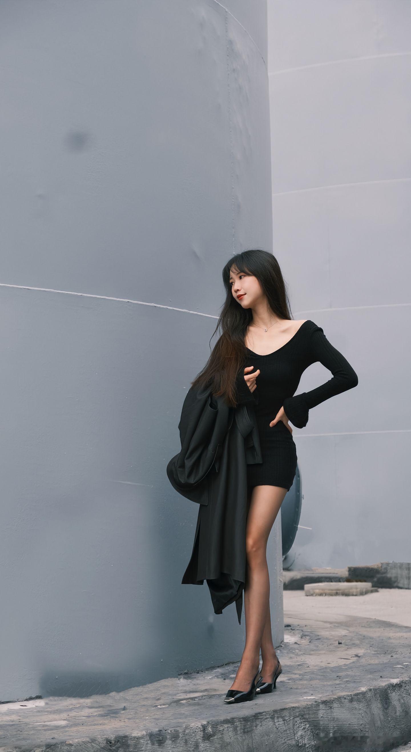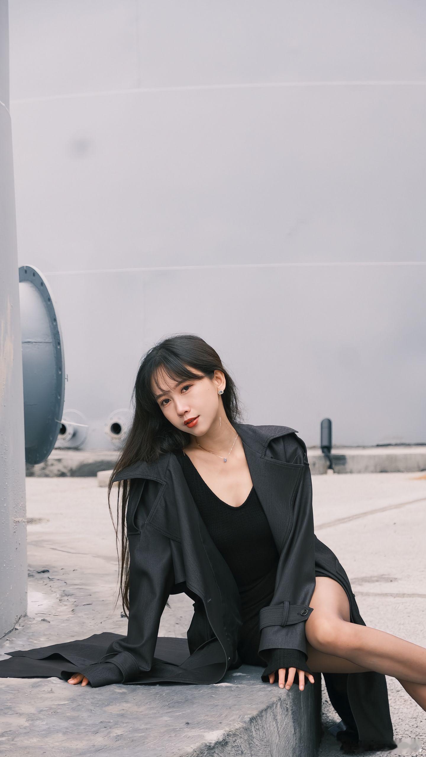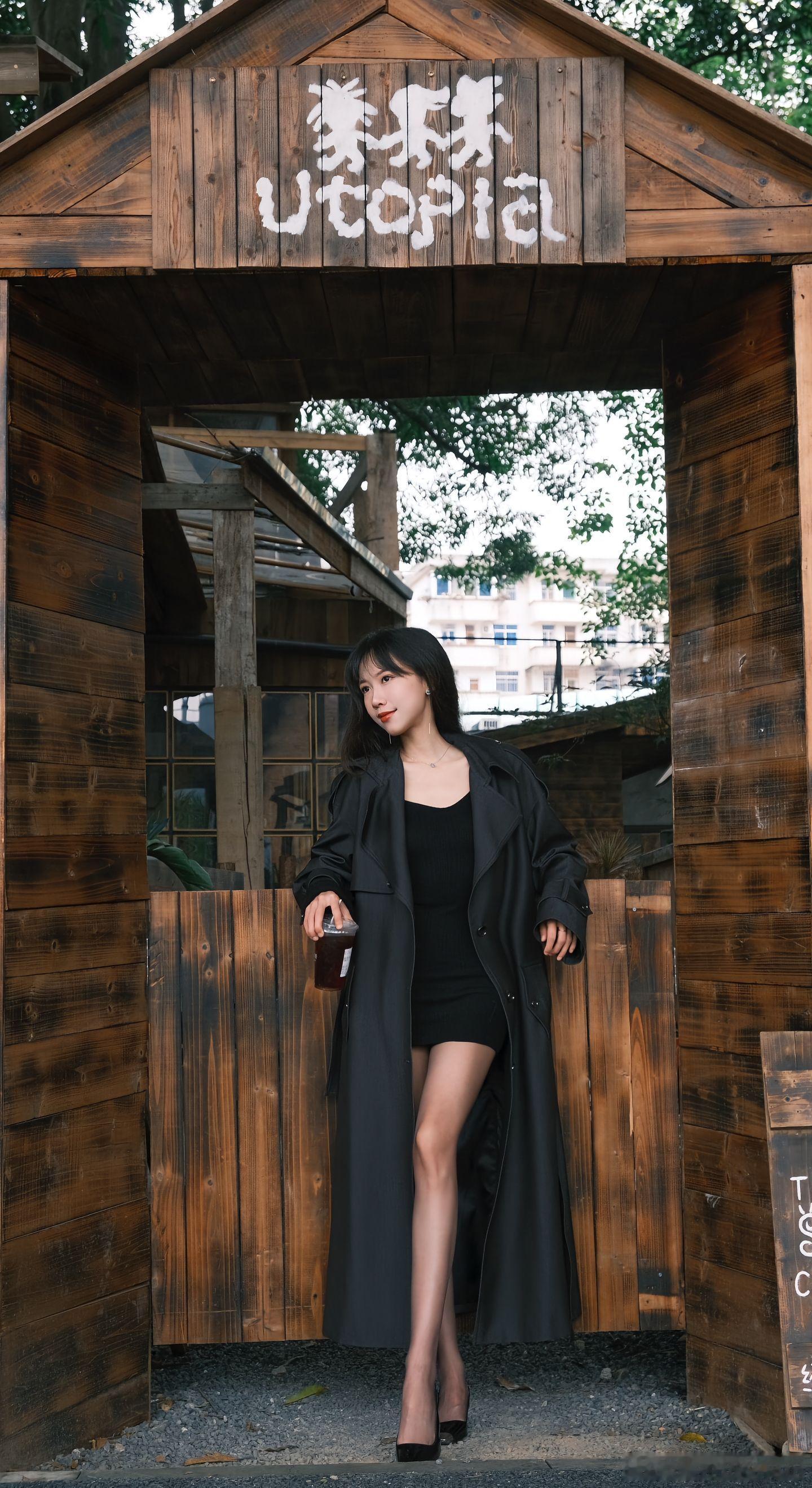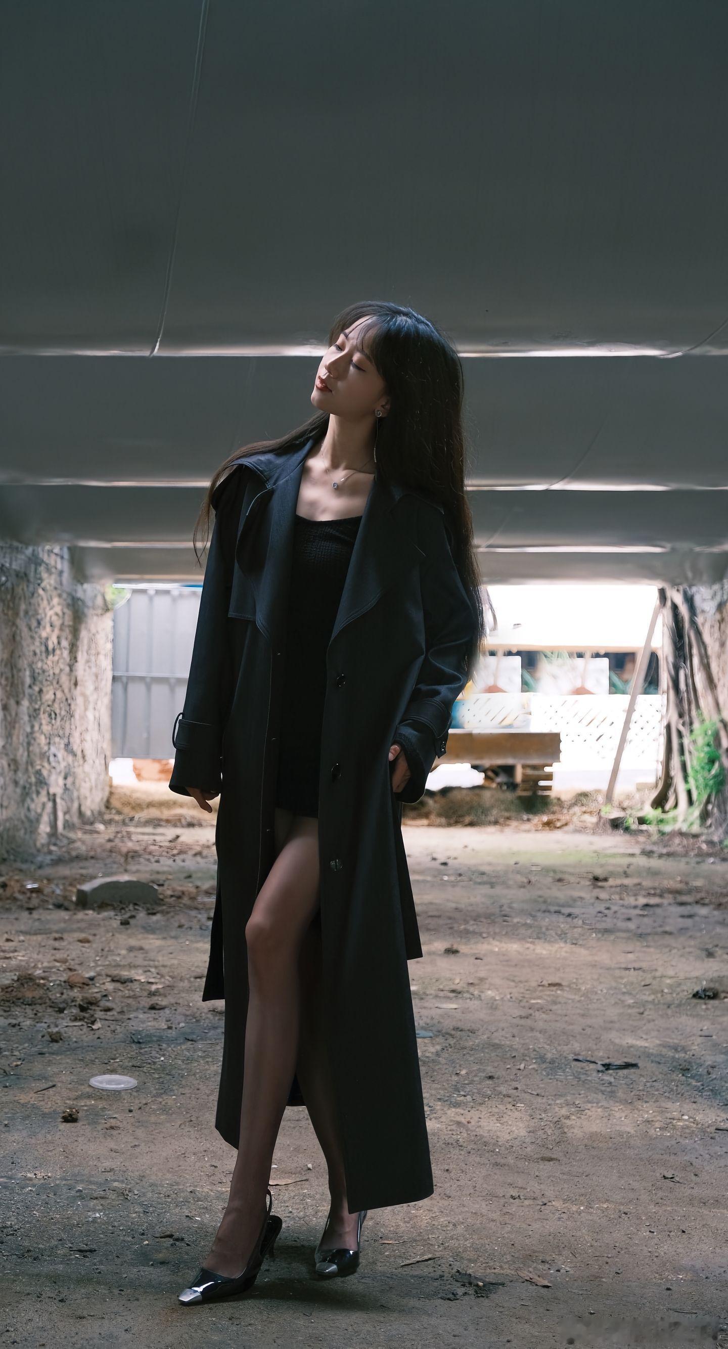 今天穿什么 黑色风衣,毛衣,黑丝,主打黑色系美女绘梦长廊