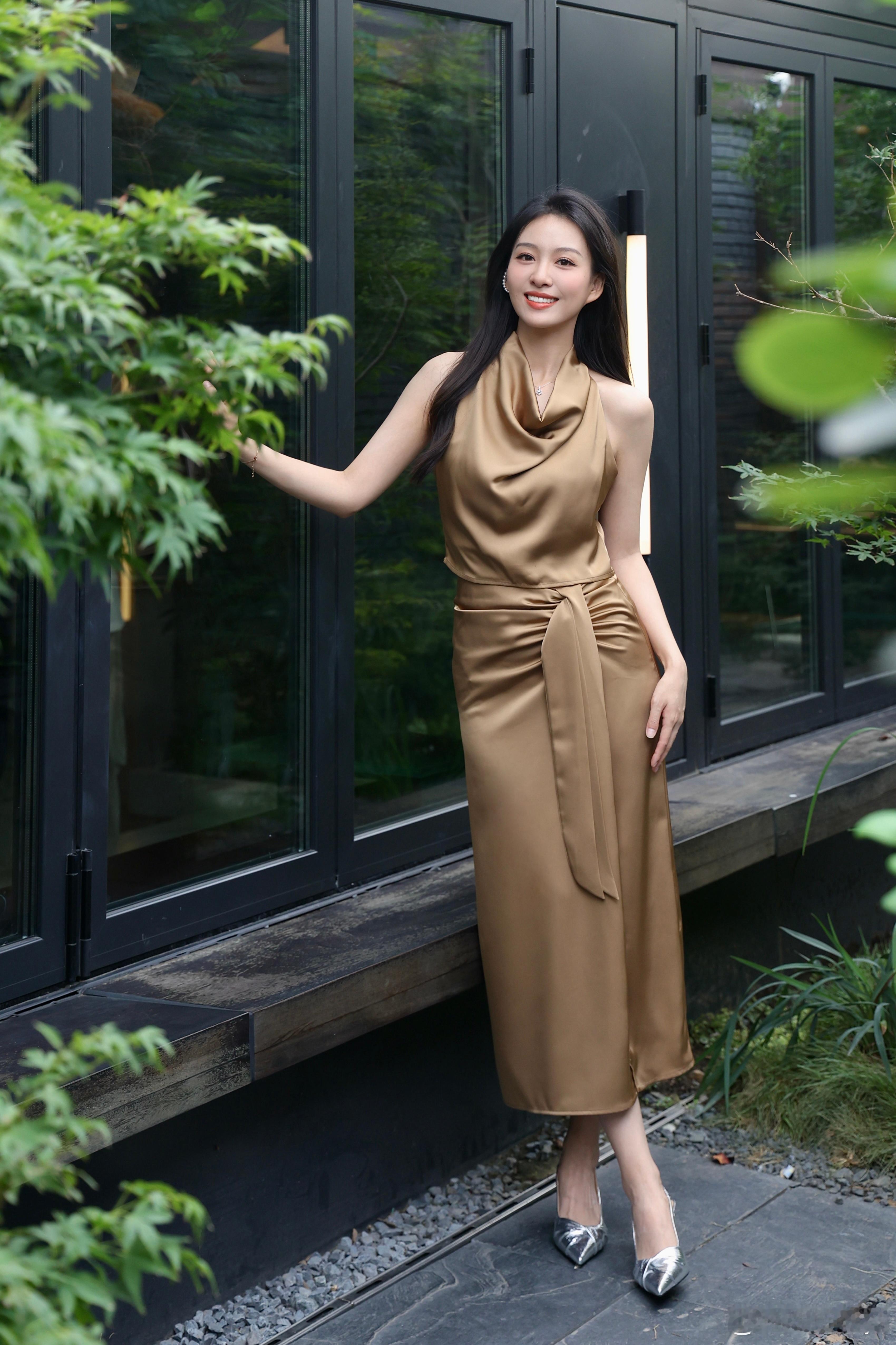 林允 鎏金礼裙裁取了海畔的落日余晖,身姿如鱼尾般勾勒出柔婉曲线,一颦皆是揉碎在风