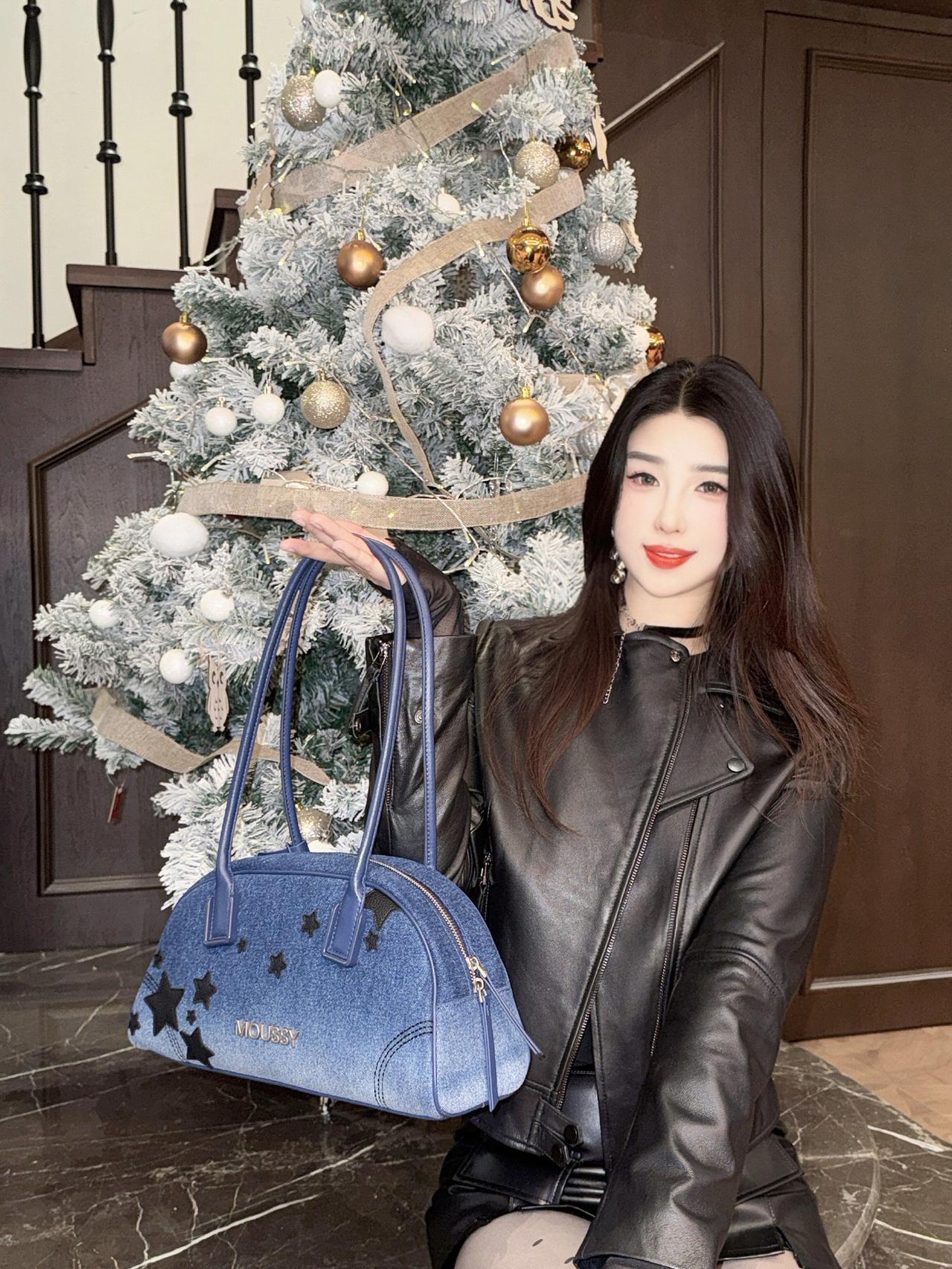 秋冬配饰锁死/牛仔包ootd|||[开箱_blue]今天分享新入手的这件牛仔蓝的MOUSSY包包,✨ 💙 一眼心动 牛仔蓝配色搭配精致的星星贴布绣,复古又时髦。包包轮廓非常硬挺立体,完全不会软塌,随便一放都很有型。 👜 容量质感 织物拼接材质,看上去很有质感。🉑单肩斜挎或手提,实测容量很足,手机、钥匙、化妆包都能轻松装下。 🌟 搭配Tips 牛仔蓝色超级百搭,无论是配夏天的简约T恤、连衣裙,还是秋冬的深色大衣,皮衣都能立刻提升整体氛围感爱啦时尚牛仔包 牛仔蓝包包 牛仔蓝水桶包 sr牛仔包 洋气高定牛仔包 牛仔包包搭配