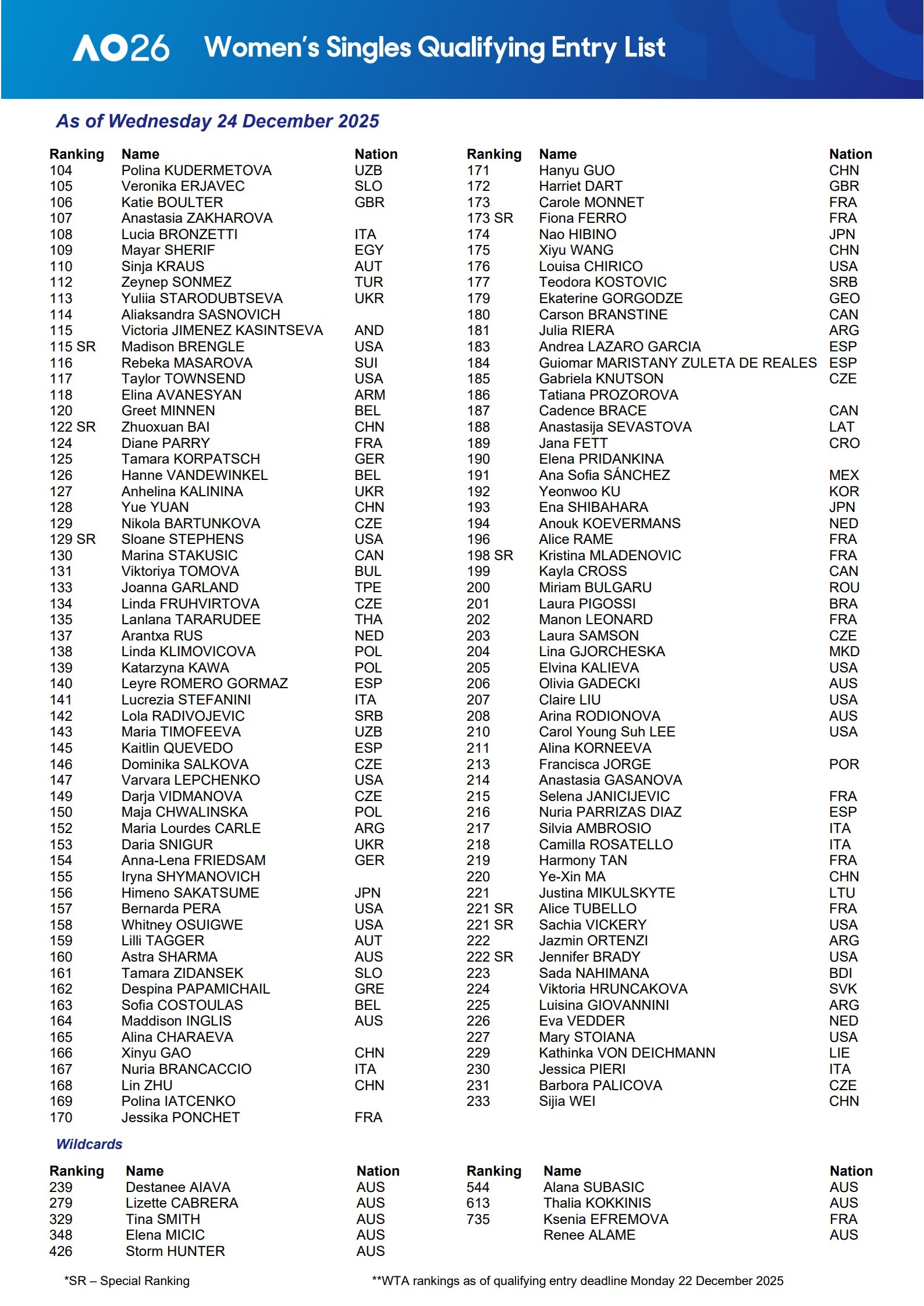 #2026澳网资格赛名单公布# 2026年澳大利亚网球公开赛资格赛将于1月12-15日举行,中国大陆选手共9人参赛。【男子】吴易昺【女子】袁悦、朱琳、白卓璇、高馨妤、王曦雨、郭涵煜、马烨欣、韦思佳#看网球上咪咕#