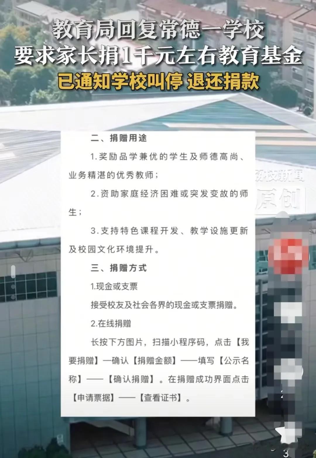 湖南常德,班级群里的一条信息,让家长们炸开了锅,为了奖励优秀的老师和学生,学校要他们捐款了,起步是1000元,还强调条件好的可以多捐,可以标上985,211这些有寓意的数字,最后也很贴心,让条件困难的私聊,可以少捐或者不捐,信息强调这是自愿的,家长们却十分为难。 可当家长们看到这条信息,私下里,家长们的内心都已经不再平静了,他们看着这条信息,看着那起步1000元的捐款,内心真的是百般不是滋味,都不知道这该捐,还是不捐。 为何要捐呢,为何要捐这么多钱呢,家委会为何又要发出这样的信息呢? 解释还得回到这条信息上,只见信息上写着,为了奖励优秀的老师和学生,家委会才要求家长们捐款,捐出来的钱,都会用到优秀的老师和学生身上。 捐款的出发点似乎挺好的,孩子们已经高二了,还有一年就要高三高考了,如果这些钱真能奖励孩子们,让孩子们有一个美好的前途,似乎这也是一件好事,并且奖励老师,老师也能更加对孩子们尽心尽力。 家长挑不出捐款的毛病在哪里,却又觉得哪里不对劲。 这捐款真的是自愿的吗? 信息里已经明确地写着,捐款的起步是1000元,如果不捐1000元,那就是不支持班里的活动,这明显就是要强制大家捐款的,如果不捐款就要私聊,显然私聊也是为了给家长压力,最后自愿捐款变成了强制捐款。 明明是变相的强制,非得说是自愿的,这看破不能说破的滋味,让家长们心里实在不好受,。 这样的捐款,实际上他要摸清家长的家底呀! 信息上说得很清楚了,起步是1000元,条件好的可以多捐,条件困难的可以私聊。 如此一来老师和家委会都把家长们的家底,摸得清清楚楚了,也把家长分为了三六九等。 如此一来,孩子们在老师面前,在学校还有公平可言吗?家庭条件好的学生,是否会得到老师的格外关注,家庭条件不好的学生,是否会被针对。 更让大家担忧的是,老师们的教学和学生的学习要钱来奖励,这是否有反作用。 如果没有奖励的老师,是否不再那么用心地教学,没有得到奖励的学生,是否也会把自己看得低人一等。 教育本就应该是纯粹的,老师的职责就是教学,就是要引导孩子往更优秀的方向走,孩子的任务就是学习,孩子应该心无旁骛地学习,不应该用钱来激励。 老师应该清楚自己的职责,学生应该用自己的一腔热情去赢得自己的未来。 一旦与金钱挂钩,老师的教学和孩子们的学习,都充满了功利心,反而会影响孩子们的求学心理。 实施教育的地方应该是一片净土,不应该是用钱来衡量一切。 更让大家反感的是,信息让大家自愿捐款,却让大家1000元起步捐款,这实际上就是不情不愿,还不如强制让家长捐1000元,这样大家还觉得是平等的,也在心理上更容易接受。 如今这所谓的自愿,实际上就是强制的,并且如此捐款,会给不同的家长,造成不同的心理困扰。 条件好的家长会担心,捐了款只是会让别人家的孩子更优秀,条件差的家长会担心,一旦不捐款,或者少捐款,孩子在学校受到特殊的对待。 不管怎样,如此自愿捐款,实际上就是强制捐款,并且还将家长分等次了,变相地也就给孩子分等次了。 如此捐款,家长自然不同意,更何况教学本就是老师的职责,不应该由家长用钱来激励他们,他们自己应该投身到教学当中。 学生们更应该在公平的环境里,公平地竞争,赢得自己的前途。 这件事是以家委会的名义来让家长们捐款的,实际上家委会或者只是一个名义,就是不好办的事,不好收的钱,用上了家委会的名义,用上自愿的原则,一切就变得合乎情理了。 所以家长们对这样的自愿捐款有很大的意见。 对此教育局的人,表示已经叫停了这样的捐款活动,交钱的将会退款。 学校也作出回应,说这是自愿的,并非是强制的。 那么如何看待这样的事情呢? 首先,学校是不可以乱收费的。 《义务教育法》第25条规定:学校不得违反国家规定收取费用,不得以向学生推销或者变相推销商品、服务等方式谋取利益。 奖励学生和老师,这样的事情不应该由家长来承担,应该由学校作出相应的奖励制度。 其次,学校应该禁止以家委会名义收取费用。 《教育部等五部门关于进一步加强和规范教育收费管理的意见》规定:学校不得强制或暗示学生及家长购买指定的教辅软件或资料,不得违规向学生及家长收取校服费、补课费、试卷费等费用。严禁以家委会名义收取费用。 实际上明人都可以看出来家委会或者只是一个名义,实际上收钱的或许是学校的要求. 那你认为这是家委会的意思,还是学校的意思?
