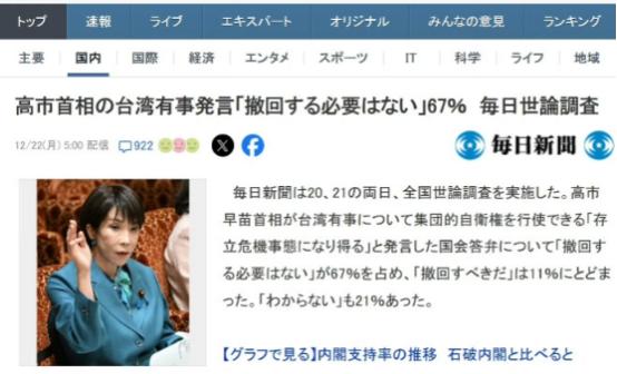 上升到人民战争了!日本民调67%支持高市,中国100%取消未来两周中日航班 说白了,现在中日之间的氛围已经紧张到一触即发,未来两周取消全部中日航班这步棋,就是用最直接的方式告诉支持右翼的日本民众:挑衅的代价,终究要你们自己买单。   日本首相高市早苗的一连串冒进操作,正是点燃这场紧张局势的核心导火索。作为公认的“安倍路线”继承人,这位右翼政客上任还不到一个月,就把对华强硬的姿态摆得明明白白。   最出格的越线行为,是她在参议院答辩时公然发表涉台挑衅言论——直接把台海问题和日本所谓“安全”捆绑,暗示日本可能武力介入台海事务,甚至拿早已被国际社会否定的《旧金山和约》当借口,完全无视1972年《中日联合声明》里“台湾是中国领土不可分割的一部分”这一核心共识。   中方多次提出严正交涉、发出强烈抗议,高市早苗内阁却始终敷衍应对,只以“立场未变”为借口,拒绝撤回这些错误言论。   中国外交部、国防部、国务院台办接连密集发声,明确表态任何势力敢阻挠中国统一大业,最终都只能是自不量力。   国际问题专家也直接定性,这是1972年中日邦交正常化以来,日本在台湾问题上最恶劣的一次挑衅,直接冲击了中日关系的政治根基。   更该警惕的是,高市早苗的挑衅绝非一时口误,而是她推进右翼政治议程的刻意操作。   涉台言论刚说完,她就抛出一连串强军扩武的想法,提出要大幅增加日本防卫开支,想进一步突破战后“专守防卫”的原则。   更危险的是,她的核心智囊还在公开场合放风,说日本有必要讨论拥有核武器的可能性,直言日本不能永远躲在别人的核保护伞下,要追求所谓“终极反击能力”。   日本是唯一遭受过核打击的国家,本该最清楚核武器的危害,现在却公然试探“拥核”红线。这种行为不只是挑衅现代国际秩序,更给整个东亚地区的安全局势蒙上了一层阴影。   中方外交部发言人在记者会上当即给出冷峻警告,明确表示如果这些言论代表日本政府的真实想法,中日关系乃至整个亚太地区的安保环境,都将发生翻天覆地的变化——这番表态,在外交辞令里已经是分量十足的严厉警示。   高市早苗这一连串右翼操作,本该遭到日本国内理性声音的坚决抵制,但实际情况却让人失望。   12月22日《每日新闻》公布的民调结果,把日本民间这种默许态度摆得明明白白。   这份民调聚焦“高市早苗是否需要撤回涉台越线言论”这个核心问题,67%的受访者直接选了“没必要”,只有11%的人认为应该撤回,剩下21%的受访者要么漠不关心,要么表示不清楚情况。   巧合的是,这份民调同时显示,高市早苗内阁的支持率也刚好是67%——就算比之前略降一点,反对率也只有22%。   更能说明问题的是共同社同期发布的另一项民调:近六成日本人明明担心中日关系紧张会冲击本国经济,却有超过一半的人不觉得高市早苗的对华应对方式有草率之处。   这两组数据凑在一起,清晰指向一个事实:日本民间有大量人支持或默许右翼的对华强硬路线,高市早苗的冒进行为,在日本国内有扎实的民意基础。   当然,日本国内也不是没有清醒的声音。“继承和发展村山谈话会”专门开了记者会,理事长藤田高景直接点破高市早苗言论的本质,说这相当于在国会公开宣称“一旦台湾有事,日本就要卷入战争”,并强烈要求她撤回错话。   青山学院大学名誉教授羽场久美子也一针见血地指出,这种言论公然违背《开罗宣言》和《波茨坦公告》的规定,是对二战后国际秩序的直接挑战。但这些理性批判,在67%的支持率面前显得格外微弱,根本撼动不了右翼势力的主导风向。   有句流传甚广的话很贴切:雪崩之下,没有一片雪花是无辜的。日本民众用投票和民调表达对右翼挑衅的支持与默许,就必须做好承担相应后果的准备。   就在各方都把目光放在日本国内民意走向和高市内阁冒险举动上时,中国给出了最直接、最有力的回应——100%取消未来两周的中日航班。   航班管家的最新统计数据,把这份回应的分量摆得明明白白:2026年1月中国大陆往返日本的航班,取消量已经达到2195班次,整体取消率突破40.4%。   其中46条中日航线,在未来两周(2025年12月23日至2026年1月5日)的计划航班被全部取消,取消率直接拉满100%。   这46条“零航班”航线覆盖了中日双方38座机场,上海浦东、虹桥两大机场有14条航线全取消,是取消最密集的城市;大阪关西机场则是中方航点直飞最多的日方目的地,超过10条航线同步停飞。   中国选在这个节点推出100%取消航班的举措,绝不是随便调整政策,而是精准对准核心问题的战略回应。
