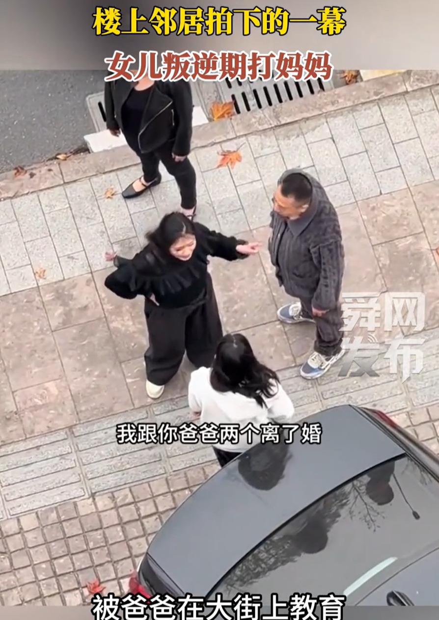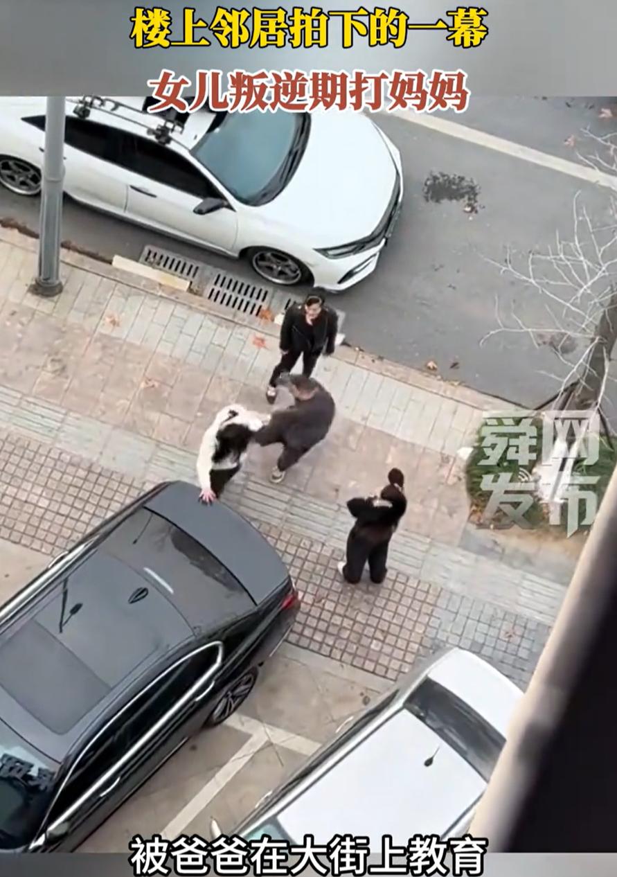 评论区一边倒!浙江,一位父亲当街对着自己的女儿动手,连打带踢,可当大家听到女儿挨打的原因后,都纷纷表示“打得好”!原来,是叛逆期的女儿先打了妈妈,这才引得爸爸出手教育!网友:这都打得轻了! 从邻居拍到的画面看,女孩情绪失控,先是打了妈妈,父亲上前制止和教育时,她依旧大声顶撞,态度很冲。父亲情绪也被彻底点燃,连续打了两下,又踢了一脚。动作不体面,也不值得模仿,却在当下把场面压住了。女孩很快安静下来,站在路边听父母说话,没有再继续失控 后面的对话信息,其实才是这件事让人沉默的地方。父母已经离婚,孩子跟着父亲生活。父亲每天起早贪黑挣钱,供她吃穿读书。母亲因为花钱问题说了几句,换来的却是女儿动手。这不是顶嘴,不是甩脸色,是实实在在的肢体冲突 这一幕,全程被邻居拍了下来并发到了网上 有网友说:叛逆期也不是打妈妈的理由,百善孝为先,这种行为太让人心寒了,必须好好教育! 可能在不少人的认知里,叛逆可以理解,情绪失控可以慢慢纠正,对父母动手是绝对的红线。一旦越线,就不是简单的教育方式问题,而是价值边界出了问题 也要说一句实话,当街动手教育孩子,本身并不体面,长期来看也不是最好的解决方式。可放在这个具体场景里,父亲面对的是一个已经对母亲使用暴力、情绪完全失控的孩子。先止住失控,再谈道理,这是很多普通家庭在紧急情况下最原始、也最直接的选择 我觉得,这件事真正值得讨论的,不是该不该打,而是为什么孩子会走到这一步。父母离婚、长期陪伴缺位、金钱供给多于情绪交流,这些问题不会立刻显现,却会慢慢堆积。当孩子把索取当成理所当然,把父母的付出当成义务,冲突迟早会爆发 女儿叛逆期打妈妈 被爸爸当街教育