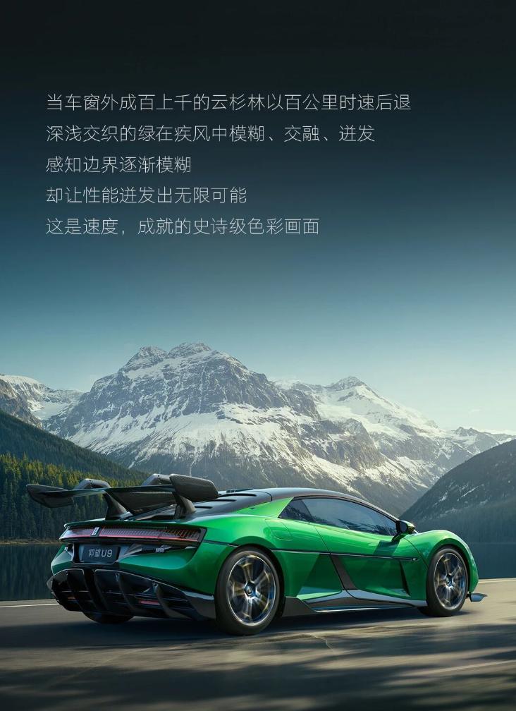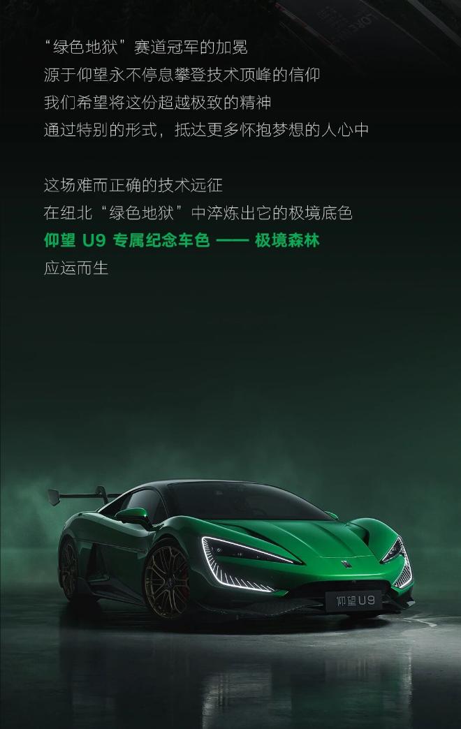 仰望U9推专属车色“极境森林”,真正的纽北绿,为纪念突破纽北电车记录的时刻,今年新车绿色特别多,害得是放在超跑上有范儿昂。现在仰望U9有紫色、红色、银色三种外观颜色,售价都是180万,这次的绿色选装价格为8万,外观5万、内饰3万,价格去到了188万,来张实车图,老板们瞅瞅和海报的区别。【来自懂车帝车友圈】