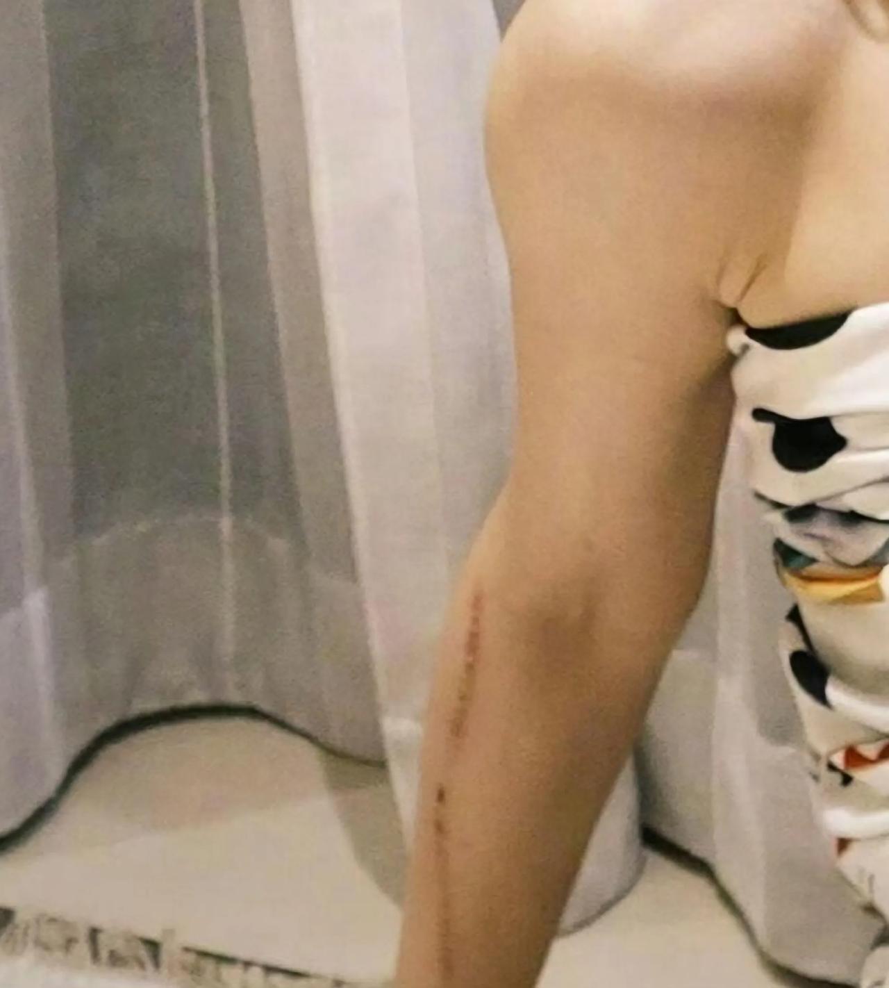 张子枫拍戏手臂上留了一条十几厘米的疤。 张子枫手臂上的疤,据说是她在《我们生活