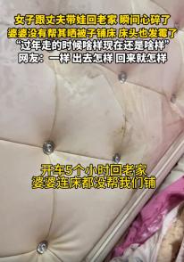 “太失望了!”一女子和老公带着娃娃回老家,开车5个小时晚上10点才到家,由于时间太晚孩子已经睡着了,女子便想着把孩子抱到床上去睡觉,谁知打开房间门一看,婆婆连床都没有帮忙铺好,并且床上的被子还是他们年后出门时盖过的被子,看到这里,女子心里涌起一阵心酸。 “这真的是我们的家吗?”女子站在房门口,压低声音对老公说了这么一句。 房间里一股说不出来的味道,像是潮气混着霉味。灯一打开,她的心一下子凉了半截。床是空的,准确地说,是“没铺过的样子”。床单歪歪扭扭地搭着,被子也没铺开。她走近一看,才发现那床被子从没晒过,床靠着墙的那一面,已经有明显的霉点。 这不是一天两天能长出来的那种,是那种一眼就能看出来“很久没人管”的霉。 那一刻,她不是生气,是心酸。说实话,她对回老家这件事,并没有太多幻想。她知道农村条件比不上城里,也没指望婆婆像电视剧里那样提前收拾得一尘不染。可她怎么也没想到,连一张床,都没人帮忙铺一下。 老公也看见了,愣了一下,说:“要不我现在铺?”女子没说话,只是点了点头。 铺床的时候,她发现床垫也是潮的,靠墙那一侧摸上去凉凉的,还有点湿。她一下子明白了,这不是“忘了铺床”,而是这间房,平时压根就没人住,也没人打理。婆婆不是不知道他们要回来,而是根本没当回事。 有人可能会说,老人年纪大了,忘了也正常。可女子心里清楚,婆婆不是记性不好。白天她还在电话里说:“你们几点到啊?路上慢点。”既然知道要回来,床铺这种最基本的事,真的一点都没想到吗? 她突然意识到一个很现实的问题:在这个家里,他们一家三口,更像是“客人”。 不是不能理解老人懒,也不是非要她伺候得多周到。可孩子还小,深夜到家,连一张干净、晒过的床都没有,这种落差,不是矫情,而是真实存在的。 这件事说大不大,说小也不小。它不是一次激烈的冲突,却像一根刺,扎得人隐隐作痛。它让人突然明白,很多家庭矛盾,并不是吵出来的,而是一次次被忽略、被敷衍、被当成“无所谓”。 虽然说,老人不欠年轻人的,但基本的尊重,谁都该有。最起码铺个床,代表着欢迎别人的到来,而不是当人来了之后才感觉可能对方压根儿就不在乎自己回不回家。 信息来源: 观象视频丨女子跟丈夫带娃回老家,瞬间心碎了,婆婆没有帮其晒被子铺床,床头也发霉了 文丨小王 编辑丨史叔