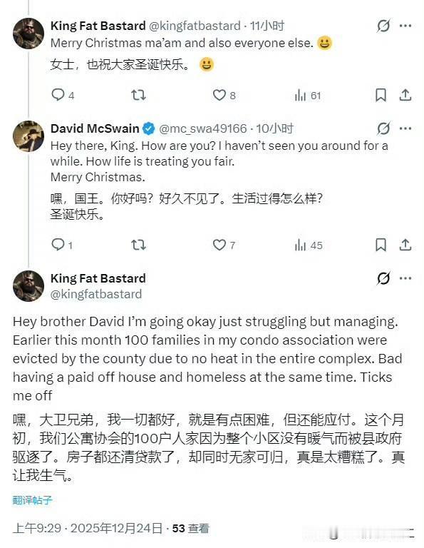 圣诞节平安夜,美国人抱怨有100户美国家庭因为没有暖气而被驱逐,现在无家可归了。