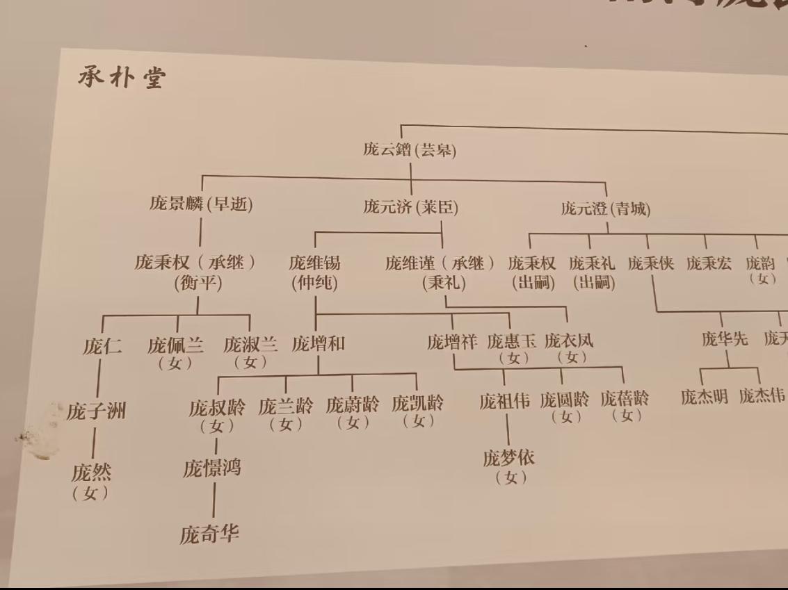 从庞家可以看出,有钱人是不会绝后的。即使生的全是女儿,也可以招上门女婿延续香火。 庞莱臣子嗣不旺,只在40岁的时候才生下一个儿子,但是这个儿子31岁因为肺病去世,幸运的是留下两个儿子,分别是庞增和、庞增祥。 长子庞增和,膝下有四个孩子,四个都是女儿,没有女儿。分别是:庞书龄(叔令)、庞兰龄、庞蔚龄、庞凯龄。他没有执着于生七八个,直到生下儿子,而是选择让长女招婿,同样延续香火。 庞叔令的孩子叫庞憧鸿,孙子叫庞奇华。 可以看出,庞叔令虽然是女性,但是她的孩子是跟她姓的。说明她给庞家传宗接代,延续香火,延续族谱。 只要有钱,有能力,自然能找到如意郎君上门,很多人执着于生儿子,不如多存钱强大自己,自己是枝繁叶茂的大树,自然有人愿意栖息在你家这一棵大树上。