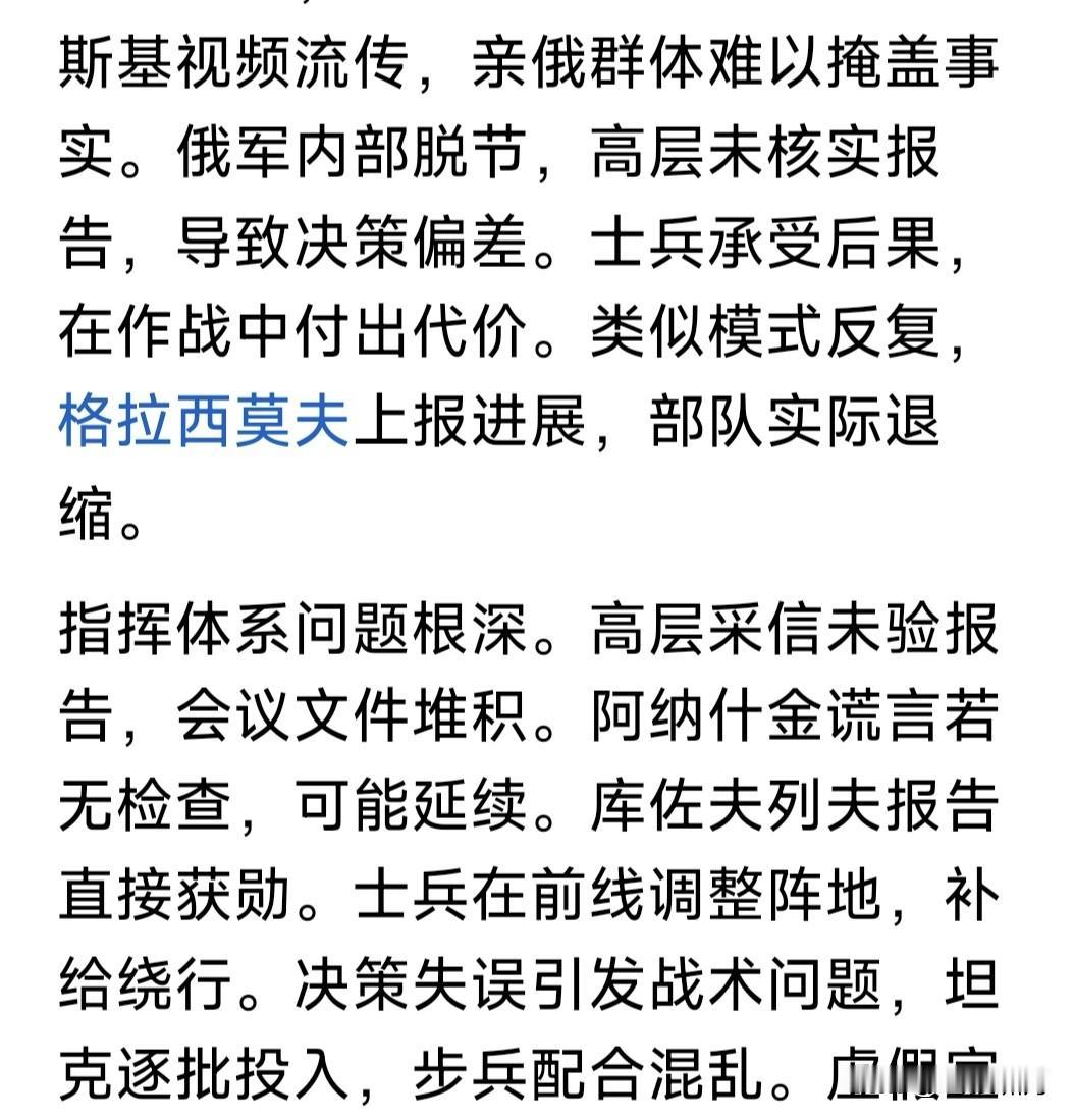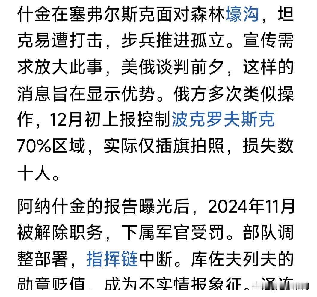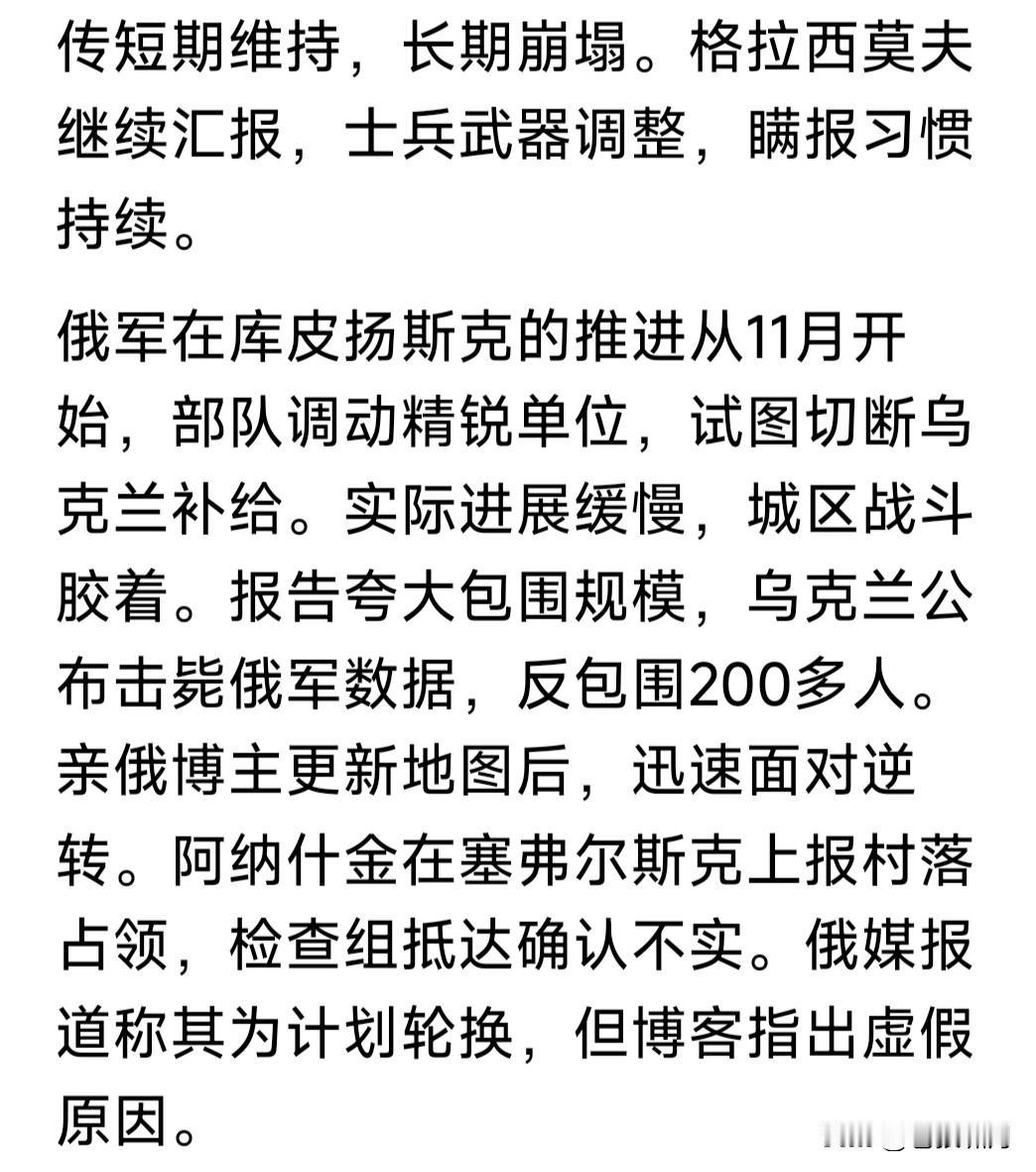 俄上将库佐夫列夫被爆“失踪”!其为俄西部集团军司令,曾于月初报告普皇,部队已占领乌库皮扬斯克,因此被颁金星勋章,获俄罗斯英雄称号。 谁知事过三天,泽连斯基现身库皮扬斯克,在该市标志性建筑物前视频留念。此处距俄军阵地仅500米,音频能听到激烈枪炮声,说明俄军并无占领该市。视频传到网上,引发俄媒大哗。 这不是谎报战果吗?此事放在古代,就是欺君之罪!何况虚报战果,导致高层误判,加大战争投入,造成损失更大!欺君加上增加损失,罪责堪比天大。事过不久,库佐夫列夫坠楼而亡! 库佐夫列夫坠楼,自杀还是他杀?目前无法确定,但失踪已是公开事实。 库佐夫列夫为何要造假?只因上层催得急!尤其川普催促俄乌停战,普皇要在停战之前,拿到更多筹码,因此投入部队猛攻,不计代价也要有所斩获。 但现代战争,打的不仅是士兵数量,还有武器质量,情报支持,军队士气,飞机导弹无人机等现代科技支撑啊! 乌有欧美强力支持,这方面比俄更胜一筹。因此俄加大兵力猛攻,进展却很缓慢,有些重要地方,还反复拉锯。 比如库皮扬斯克,波克罗夫斯克,以及网友说的“塞弗尔斯克”等,都是这种情况。上面催得急,下面就说占领了。红军城占领无数次,至今还在争夺? 目前情况看,乌想夺回乌东四州很难!俄想啃下此地也不易!俄乌都想停战,关键是这块地方属谁?这是分歧焦点!怎么办?继续打还是暂时搁置呢? 谈判还在进行!战争仍在继续!能否实现停战?一看特朗普决心,二看俄乌谁先妥协!如果都不妥协,只能继续往下打。打到最后何结局?不好说啊! …………