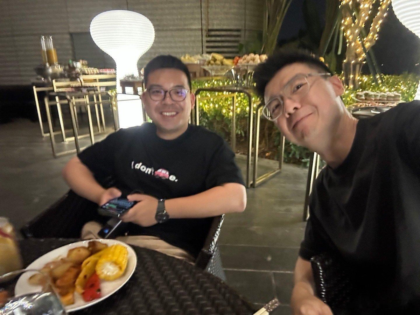 你今晚跟谁吃平安夜大餐,我跟一个肥仔吃,而且还是在户外穿着短袖吃…真魔幻啊