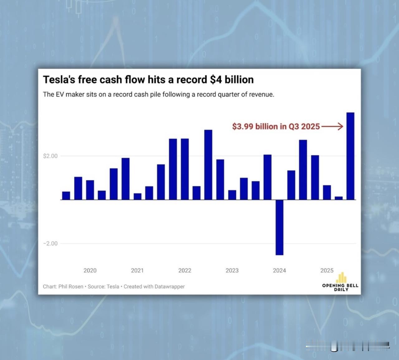 特斯拉打破自己的记录,公司刚刚发布了收入、交付和自由现金流的历史新高,将其现金和投资推至41.6亿美元。te s la Tesla is breaking its own records and stacking cash while doing it. The company just posted all-time highs across revenue, deliveries, and free cash flow, pushing its cash and investments to $41.6B. Margins are still tighter than they were a year ago, and earnings didn't come in clean. But the underlying trend matters more: Tesla is scaling efficiently while shifting beyond cars. Energy revenue is accelerating faster than automotive, operating margins are stabilizing, and the balance sheet is stronger than ever — giving Tesla massive flexibility to invest in Al, robotics, and long-term infrastructure.