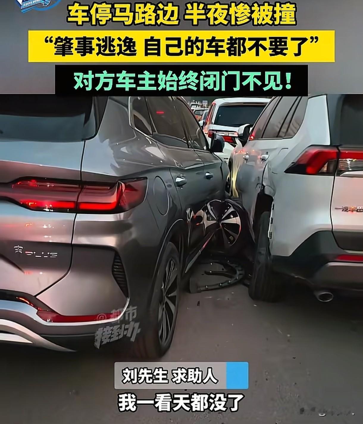 河南郑州,男子把车停在马路边,半夜车子被撞了,对方车主并未联系他们,而是肇事逃逸