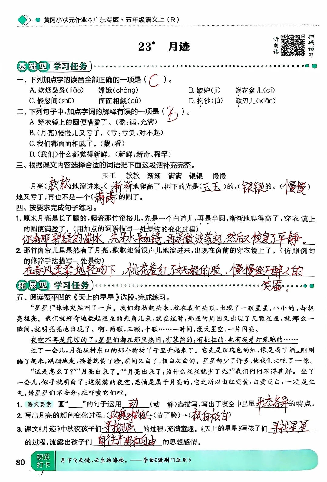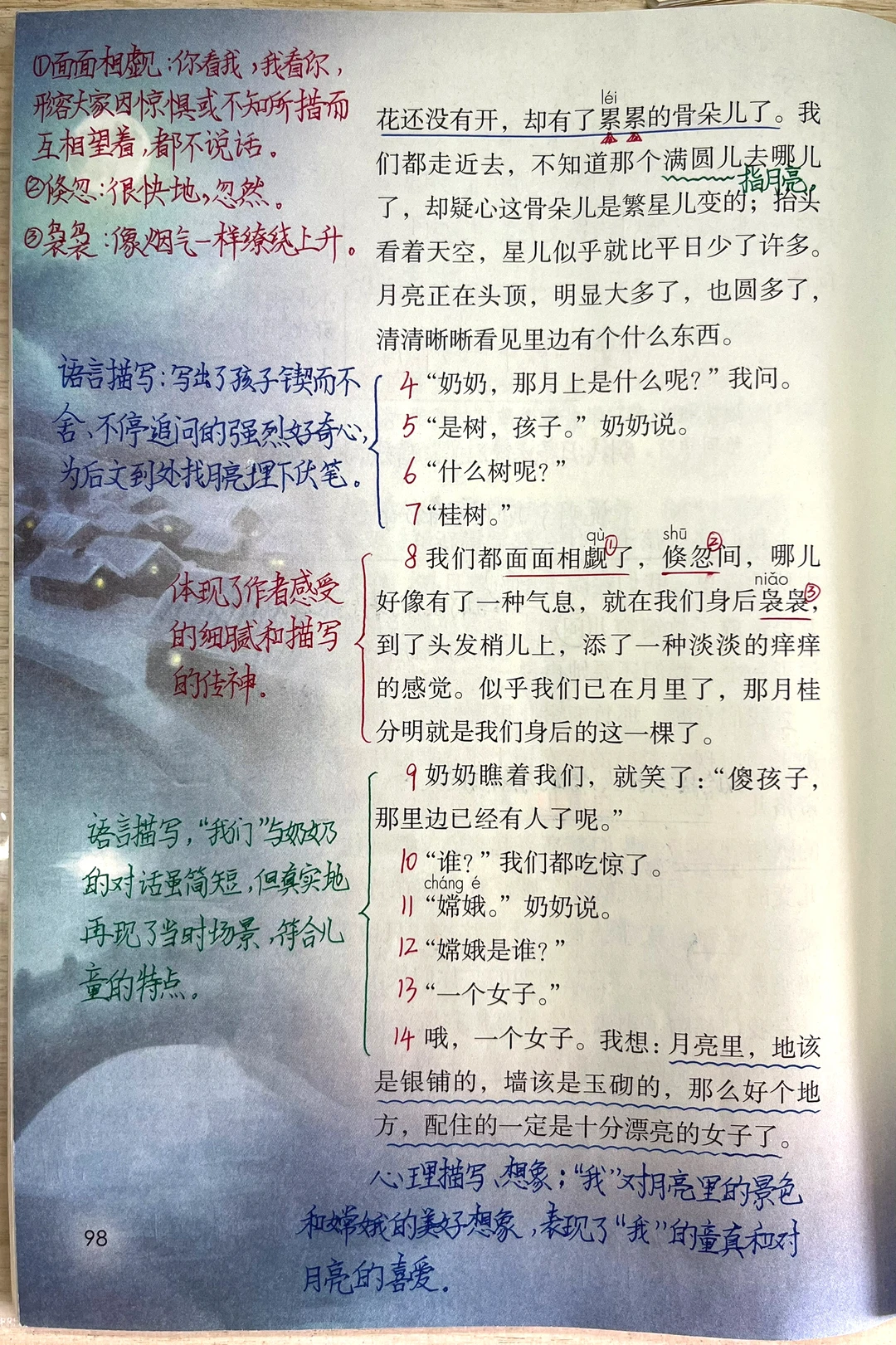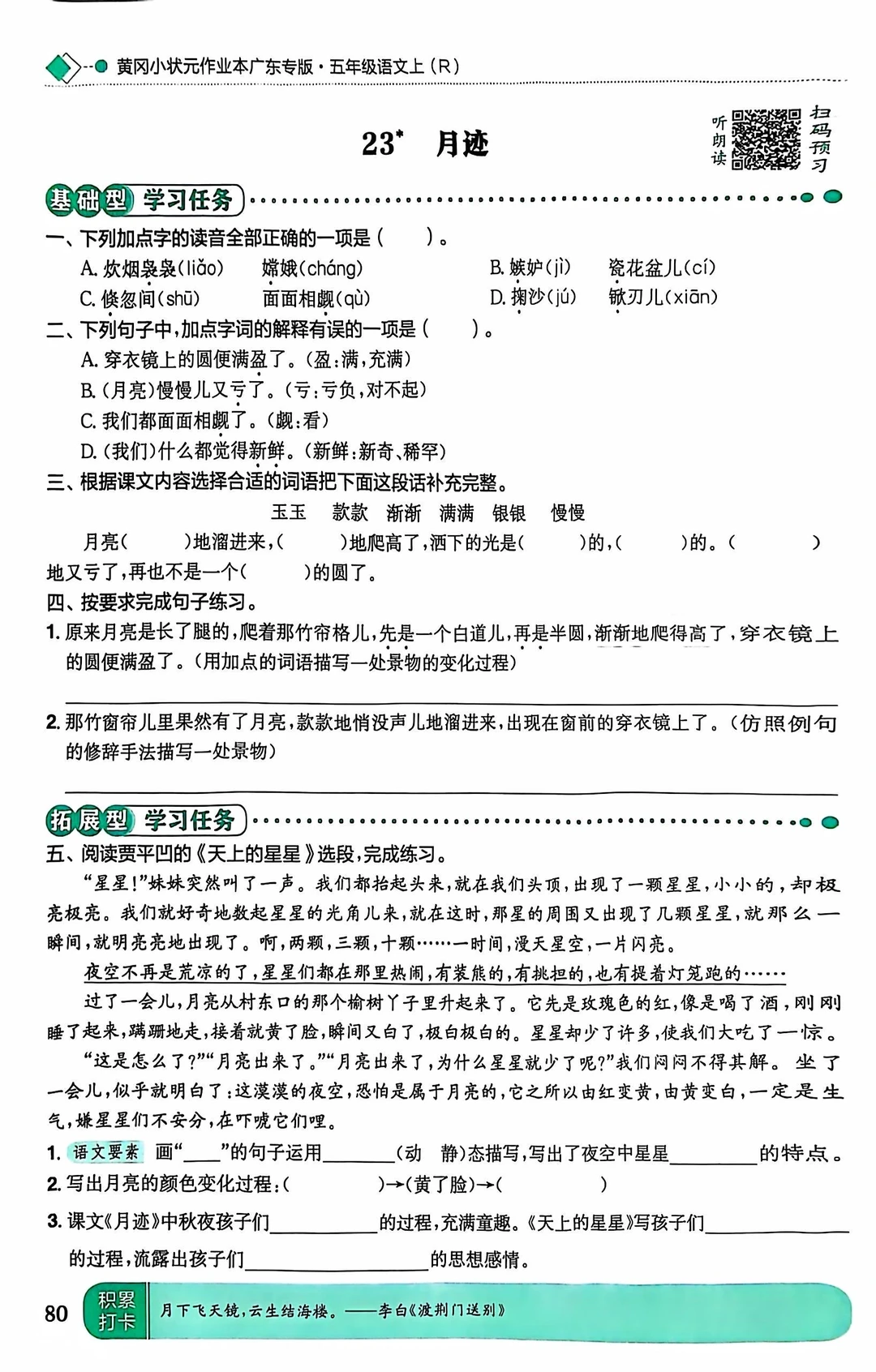 1.认识 “嫦、娥”等生字,读准多音字“悄、累”。