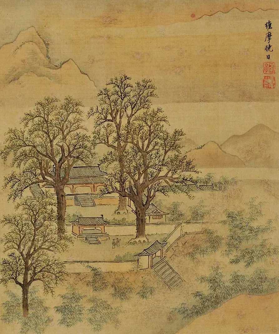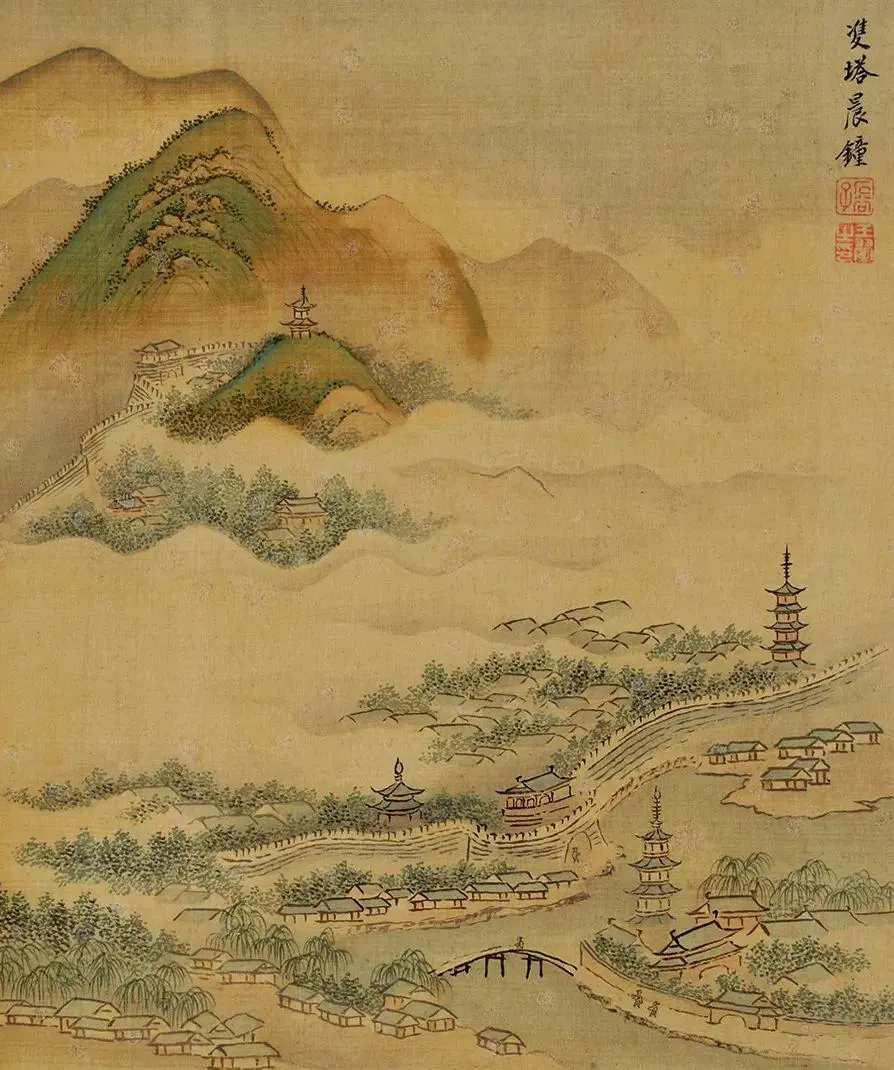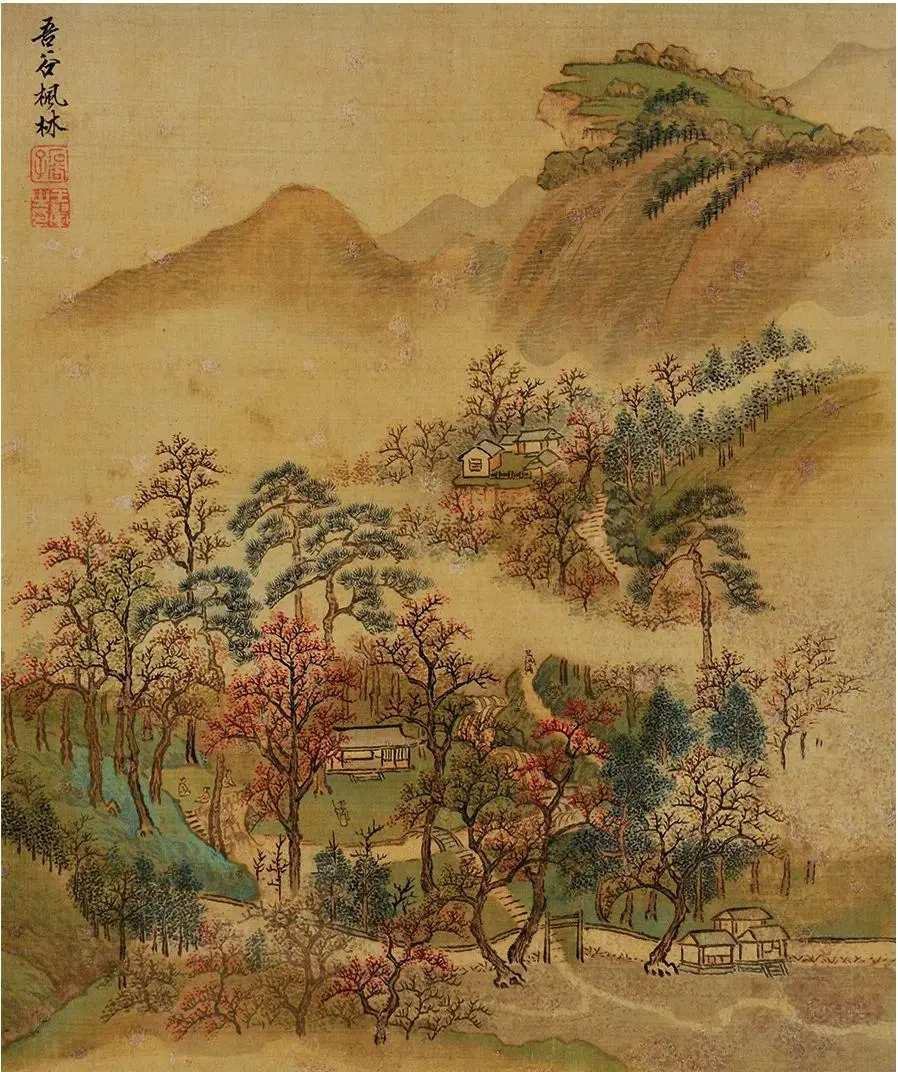 王 翚(1632-1717)虞山十二景。册页(十二开)设色绢本 30×25 cm×12,1684年作。以唐宋元诸家笔法写虞山图景的十二种,备极精巧,大多数景致今日仍可寻得,足称古人卧游佳构。这就是中国风遇见艺术