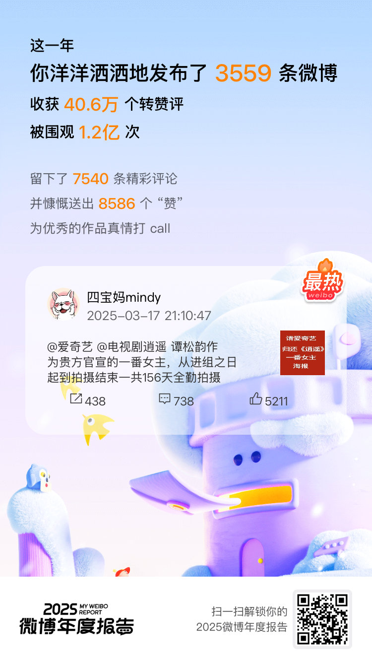 我的2025都是满满的捷报喜报!2025我的V影响力力持续在线:金V成就闪耀120天,橙V成就点亮245天! 感谢家人们一路力挺!来看看你的年度总结吧~点击开启>>2025微博年度报告 微博年度报告微博之夜