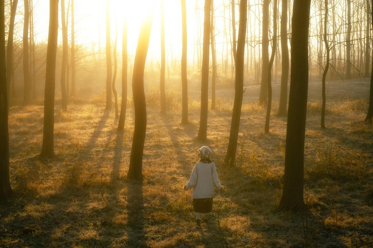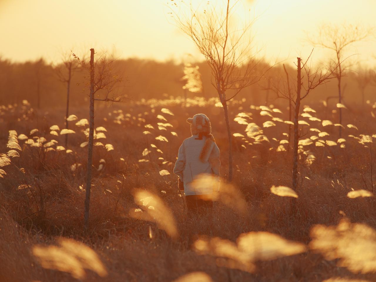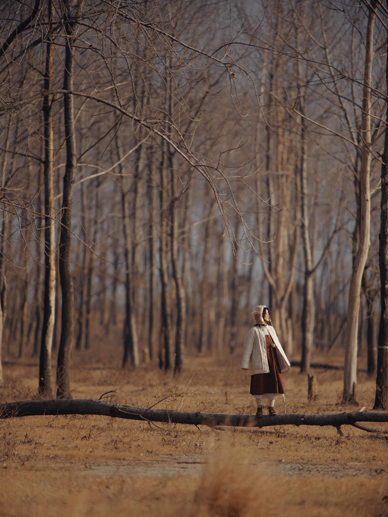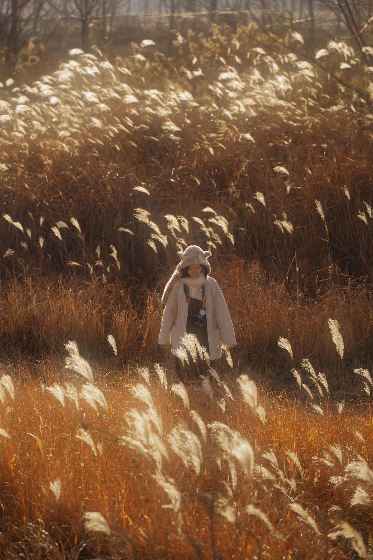 四季情绪意境人像的创作,离不开环境元素的符号化运用,这组作品将芦苇、枯树、雾气等秋日元素转化为情绪的视觉符号,通过符号的叠加与组合,让画面的情绪表达更具深度与感染力,为四季情绪人像的环境选择提供了清晰的创作逻辑。 单一元素的符号化赋予情绪具象的载体。芦苇在作品中成为“萧瑟与温柔”的双重符号,第二张作品里,金黄的芦苇穗在逆光下闪烁,传递出秋日的温柔;第五张作品中,枯黄的芦苇在夕阳下摇曳,又成为萧瑟情绪的具象表达。枯树则是“孤独与坚韧”的符号,第四张作品里,笔直的枯树林形成压抑的视觉感受,强化了人物的孤独感;第八张作品中,横卧的枯木成为人物的支撑点,枯树的坚韧特质与人物的彷徨情绪形成对比,让画面的情绪更具冲突感与张力。