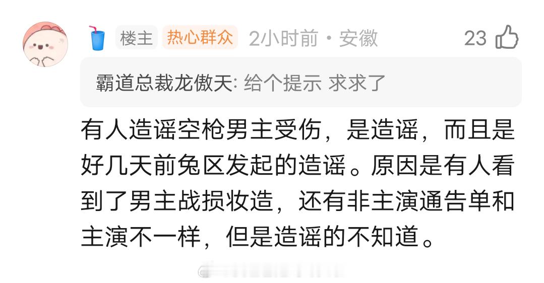 朱一龙粉丝澄清:男顶流受伤是假瓜,有人看到了《空枪》男主战损妆造,就造谣男顶流拍戏受伤。工作室也疑似发营业照打假。。。曝男顶流拍戏受伤 朱一龙工作室更新