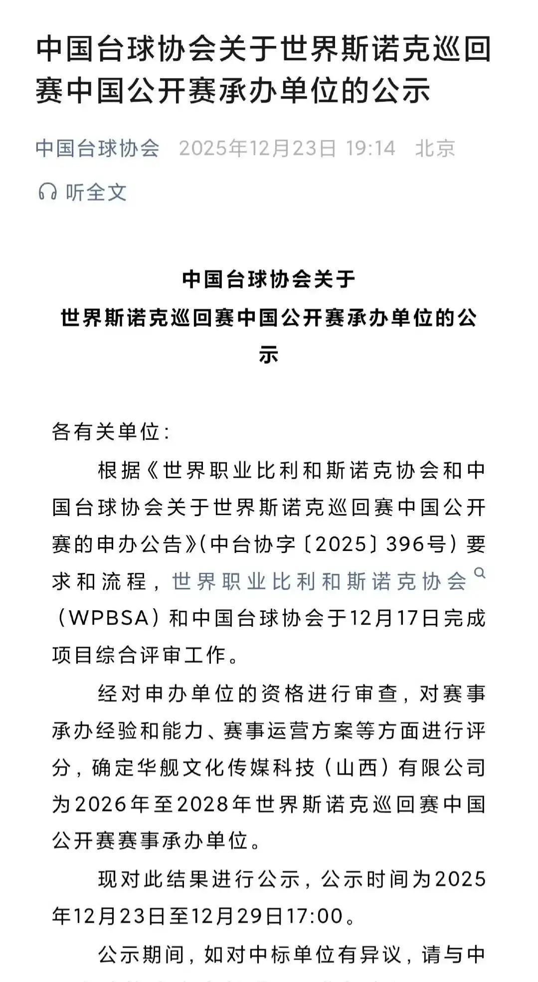山西要办斯诺克中国公开赛了。不是北京,不是上海,是山西。 我猜你脑子里闪过的还是煤和醋。但山西省砸下真金白银,一口气签了三年。百万英镑奖金,全球Top16选手,全部涌向太原。世界斯诺克协会主席盯着这里,说这是他们中国市场回归的棋眼。 太原正在改造体育馆,灯光、转播席按最高标准重装。他们算了一笔账:一届比赛,五万人涌进赛场,能拉动周边消费两个亿。酒店订爆,旅游线路重新规划。这不止是看球,这是用一根球杆,撬动一座城的消费升级。 丁俊晖们早就盼着更多主场。现在,山西把赛场铺到了他们脚下。2026年开始,连续三年,这里将是斯诺克日历上最闪亮的新坐标。它不再仅仅是一项赛事,更是一封来自新山西的邀请函。