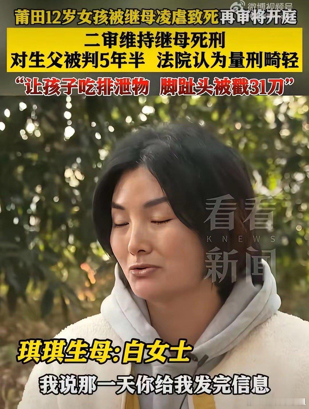 报应来了,继母被判死刑了,福建莆田12岁女孩琪琪被继母虐待致死,死前琪琪的嘴巴被