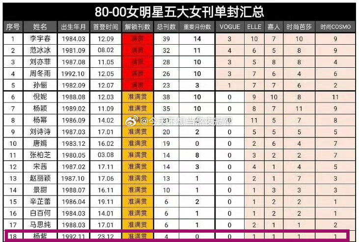 杨紫 从首登五大到五大满贯,用时仅两年一个月是80后女星主流女刊刷封速度top1杨紫首次挑战超40岁年龄跨度角色杨紫开机花絮