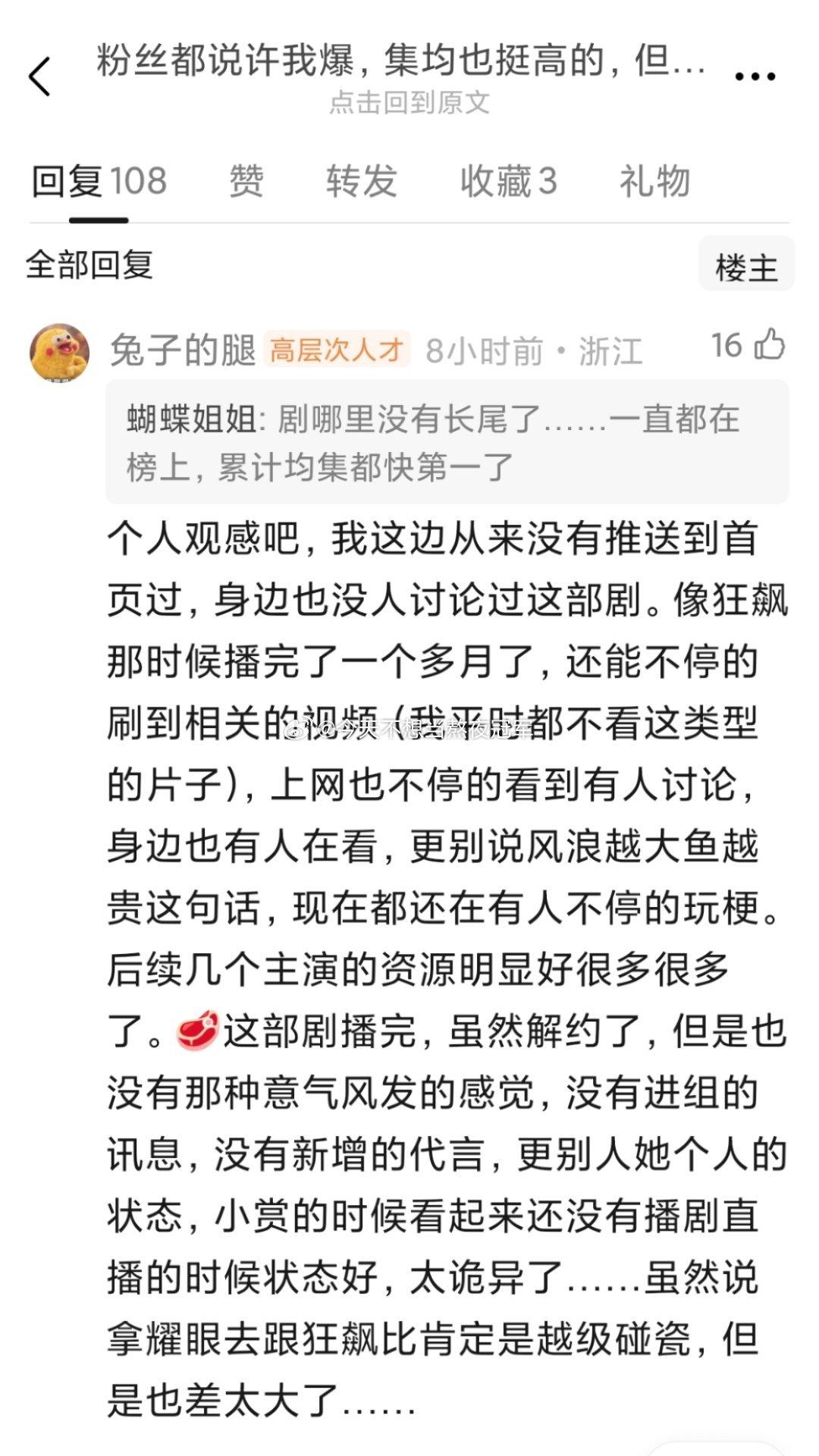 瓣组上百层楼的高楼热议,网友质疑《许我耀眼》年冠德不配位,y1s1,你们觉得这部到底是全民向爆剧还是粉圈限定的爆?按说以往真正的爆剧都是全员上桌,爆人爆梗爆ost爆长尾,可《许我耀眼》不仅后劲乏力,对男女主的加成也很有限,甚至连男二女二的名字都叫不出来。赵露思目前0新商务,也无新剧zy,目前拿到的红利大概仅限于摆平了和yhky的合约