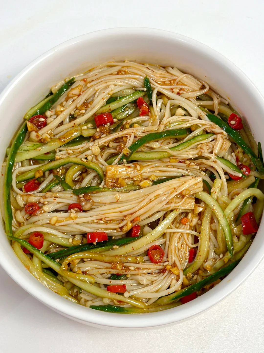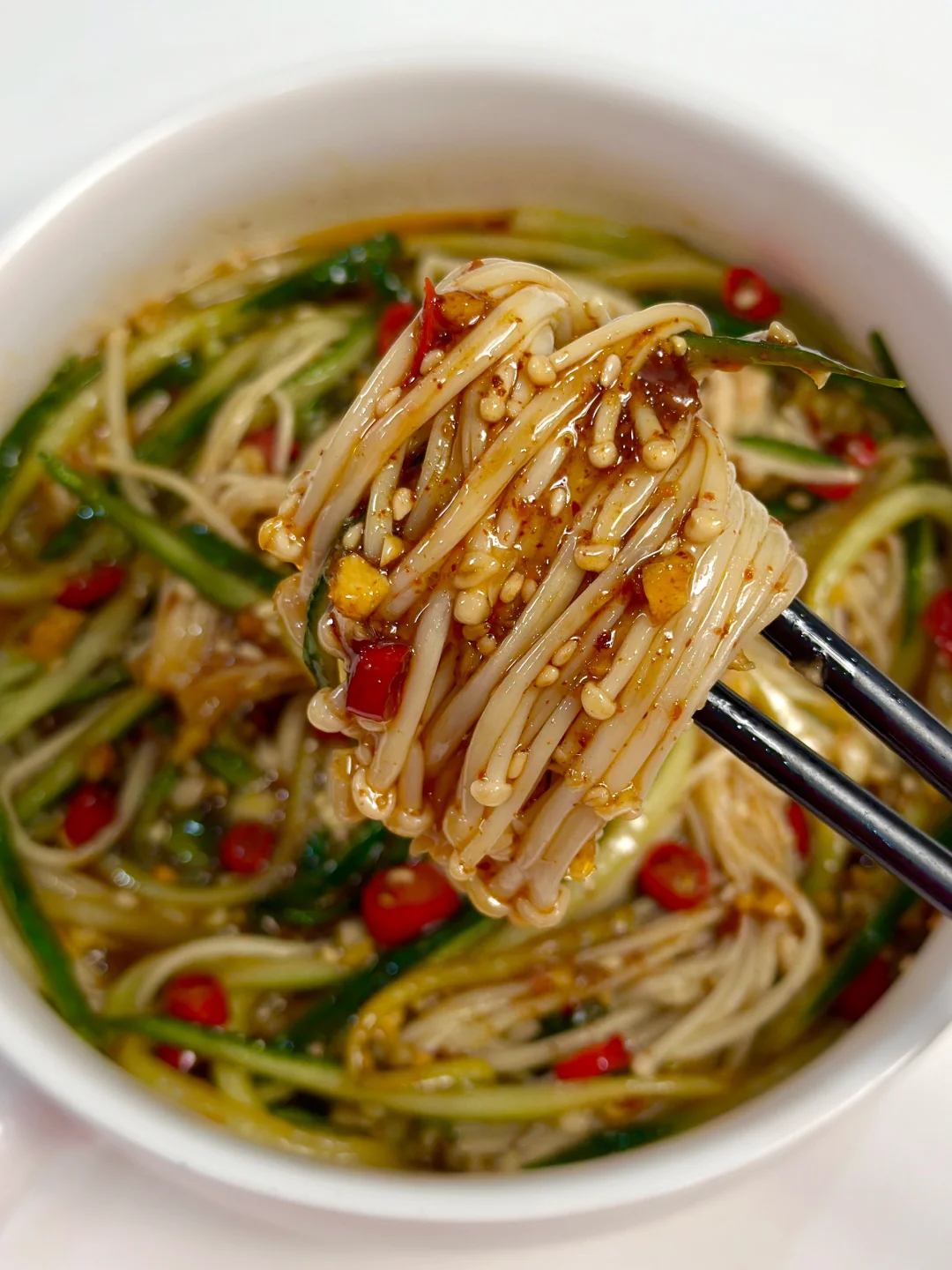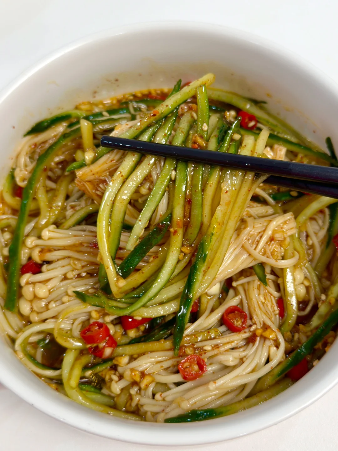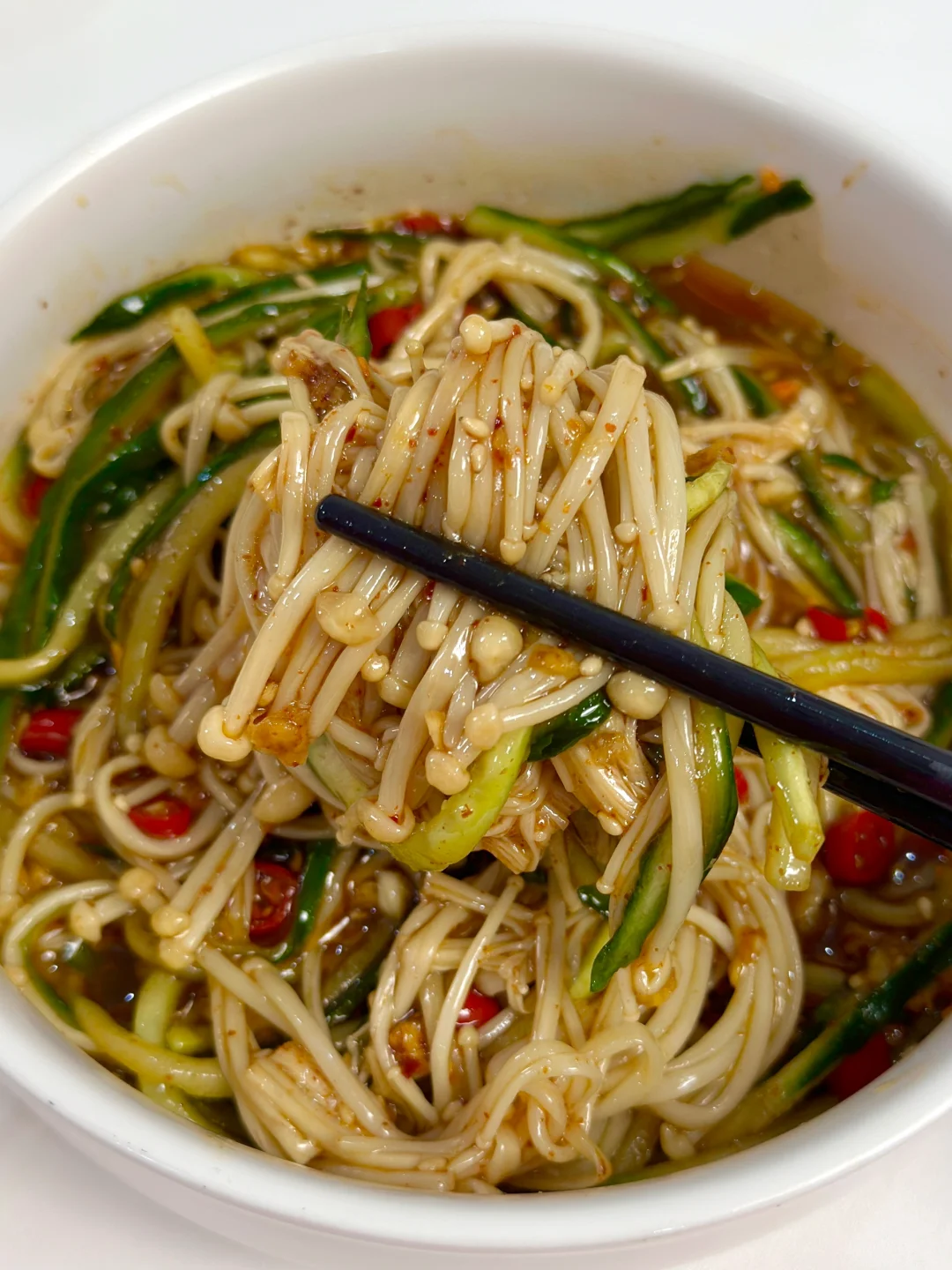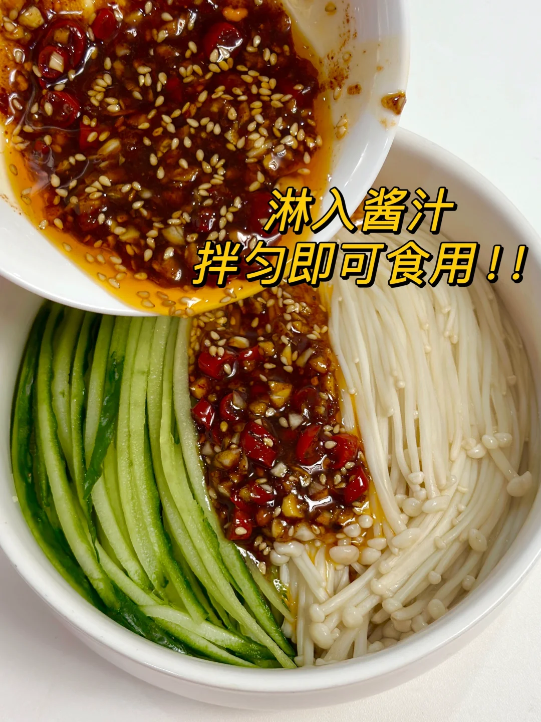 分享巨好吃的金针菇拌黄瓜!巨清爽巨好吃!黄瓜爽脆!金针菇可口!拌上灵魂酱汁太绝了!低脂低卡!姐妹们冲! 食材做法如图!姐妹们快去试试吧!!