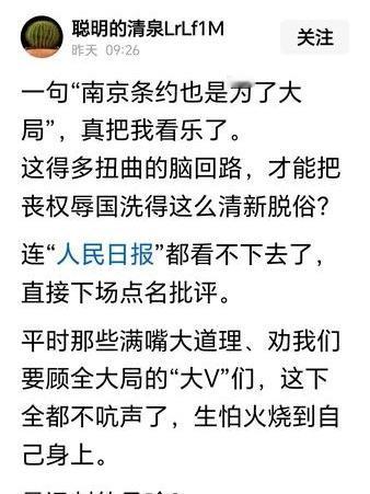 这是咋了?现在网络上竟然有人拿出《南京条约》进行洗白,说什么“南京条约也是为了大局”?割地赔款,丧权辱国,软弱无能,丢人现眼,这也是顾全大局?那么请问“顾的什么大局”?这些人拿“南京条约”洗白,这已经不是立场观点问题了,而是在制造舆论混乱,有祸国殃民之嫌了?这种帖子怎么会发出来?这些人想要干什么?