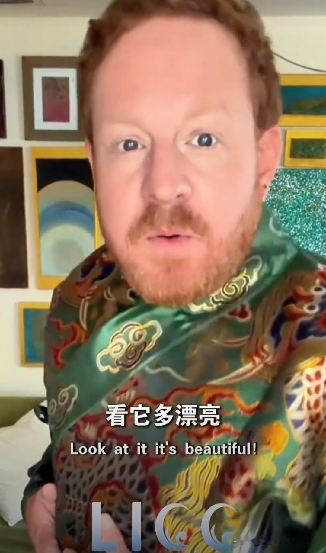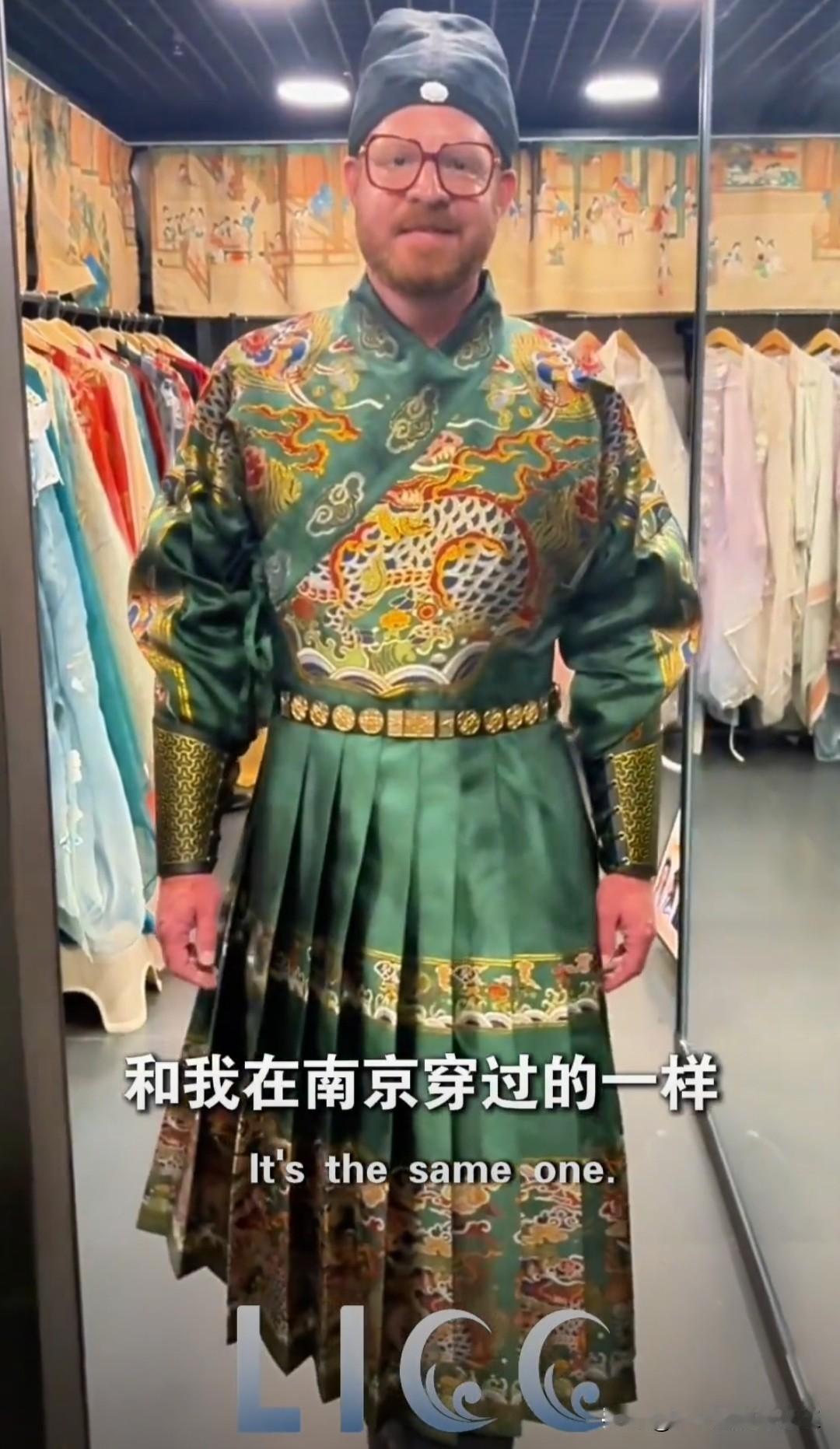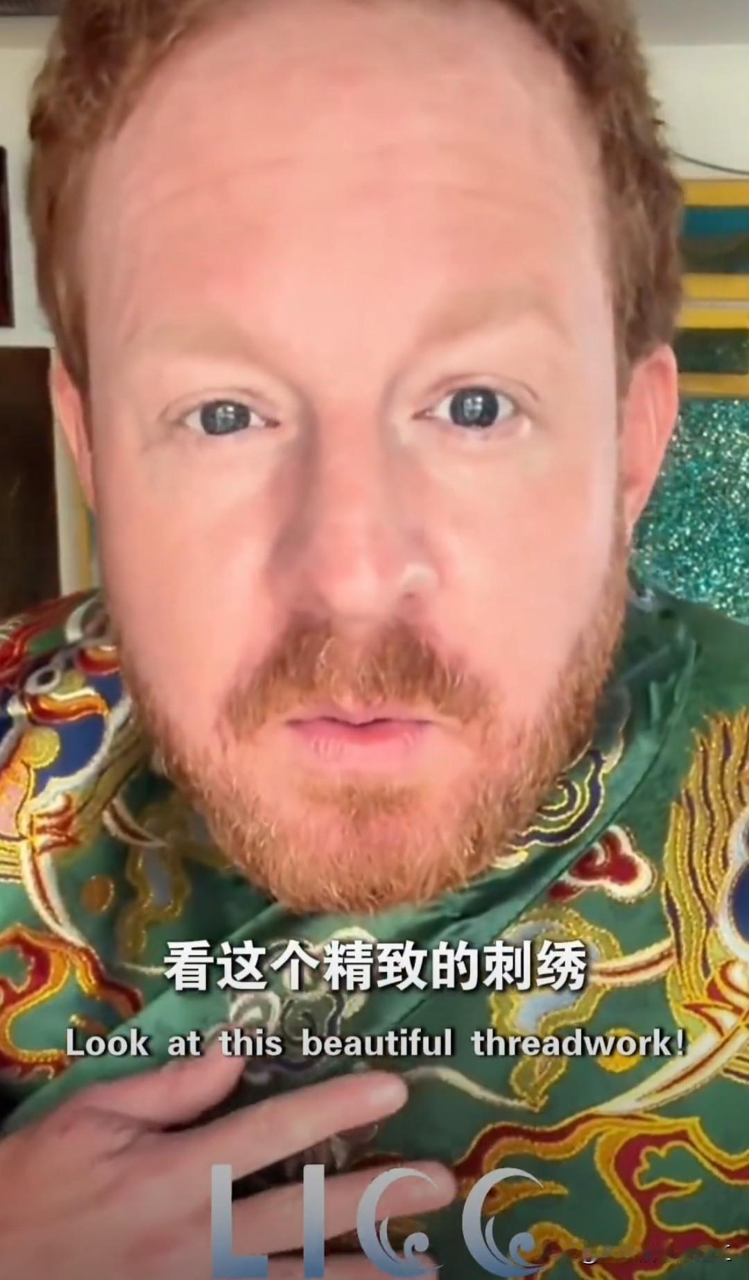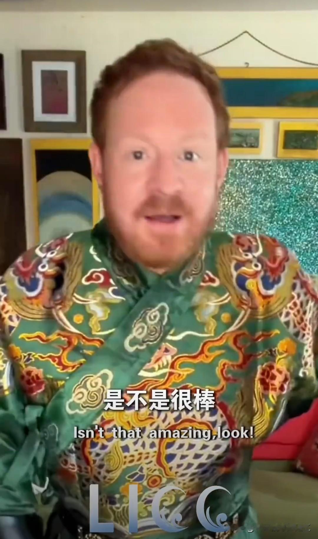 美国游客在中国旅游时爱上汉服,回国后网购到同款并分享喜悦!就是那个下飞机哭回国也哭的美国游客,回国时他买了一堆文创产品。