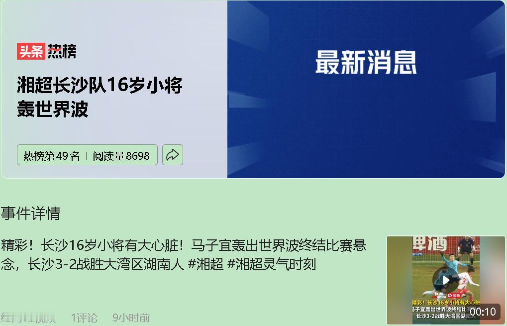 别再只盯着马子宜那一脚世界波喊“卧槽”了。说真的,这一脚踢飞的哪只是一个球,它像面镜子,照出了湖南人那股子“霸得蛮”背后,最拧巴也最真实的心事。 你看,几天前在同一个贺龙体育场,号称“无冕之王”的长沙队,在家门口被永州队点球淘汰了。永州队是啥配置?一半人是在校高中生,平均年龄不到20岁,赛前连替补都难凑齐,被戏称“告花子队”。可就是这么一帮“学生军”,硬是靠着“永冲锋”的蛮劲,把老大哥给拉下了马。这不比热血漫画还燃?但燃完之后呢,心里是不是有点空落落的?我们最好的故事,怎么总是“以下克上”的逆袭,而不是“强者恒强”的荣耀? 这就说到痛点了。湖南足球,特别像湖南人的性格:自己人关起门来,往死里卷。长沙的青训体系绝对是标杆,从小学到大学,一条龙培养。像雅礼、麓山国际这些名校,足球都是办学特色。这次湘超硬性规定,每队每场必须至少上3个中学生,就是为了让娃娃兵有舞台。结果就是,长沙成了个巨大的“足球人才工厂”,给全省甚至全国输送苗子。讽刺的是,自己培养的精兵,转头就在全省联赛里,帮着别的队来“掀翻”长沙。你说这算成功,还是算尴尬? 所以你再看看这场和大湾区湖南人队的比赛,味道就变了。它哪是简单的友谊赛,更像一场精心策划的“家宴”。对手队里近1300万在大湾区的湖南老乡而战,队员里超过六成是22岁以下的学生。长沙赢下这场比赛,像是在对所有在外闯荡的游子喊话:看,家里现在搞得不错,根还在这里。这很温情,但也很现实。因为一个残酷的事实是:湖南目前没有顶级职业联赛的球队。这意味着,那些在马子宜这个年纪闪耀的天才少年,他们的下一站,很可能不得不去远方寻找更大的舞台。 说这些不是泼冷水。恰恰相反,我觉得湘超这么搞,格局反而打开了。它不玩虚的职业化空壳,就扎根本土,让足球真正回到校园和街头。它让永州这样的“草根”有机会创造奇迹,也让散落在外的湖南人,能以一个球队的名义“回家”。这比赛踢的是球,连起来的却是情。 马子宜那一脚很帅,但真正牛的是他背后那片土壤。湖南足球现在最不缺的,就是热血的故事和出色的苗子。它缺的是一个能把所有苗子留住,让他们在家门口就能长成参天大树的家园。路还长,但至少,他们踢的每一脚,都在往那个方向努力。