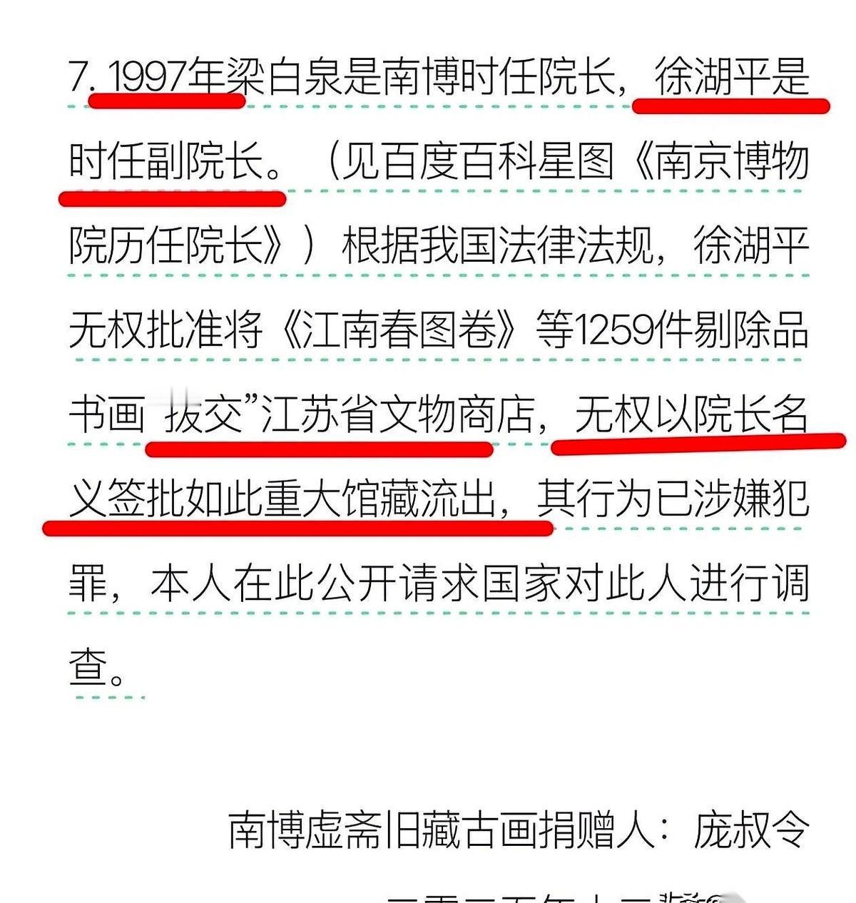 好家伙,这事儿直接捅到《亚洲周刊》了。 本来是家里的事儿,关起门来说,再怎么也是内部矛盾。现在好了,直接捅给国际媒体,全世界都知道了。 这下,南京博物院和新华社的脸,估计都挂不住了。 你说你惹谁不好,偏偏惹了个硬骨头。庞家人直接点名道姓,说当年博物院藏了关键证据,还指认了当年的副院长徐湖平。 那老先生也是,急着出来澄清。 澄清就澄清吧,非要把自己那一屋子古董宝贝全亮出来。 生怕别人不知道你家底厚实是吗? 这脑回路,真是看不懂。明明签过字,现在又说记不清,你这不等于告诉大家“我这里有事儿”吗? 其实这事儿最让人寒心的,不是画归谁,也不是谁说了谎。 是人心。 当年庞家一腔热血,把压箱底的宝贝捐出来,图啥?图个名?图个利?不就是图个对得起国家,对得起这份文化传承吗? 结果呢? 几十年后,换来的是一盆冷水,还被人阴阳怪气说“家道中落,要靠卖画求生”。 换你,你寒心不? 也就是庞家,瘦死的骆驼比马大,还有力气、有人脉去讨个公道。 这要是换成普通老百姓呢?东西捐了,是不是就等于泼出去的水,连个响儿都听不见了? 信任这东西,建起来需要几代人的心血。 毁掉它,一件事就够了。
