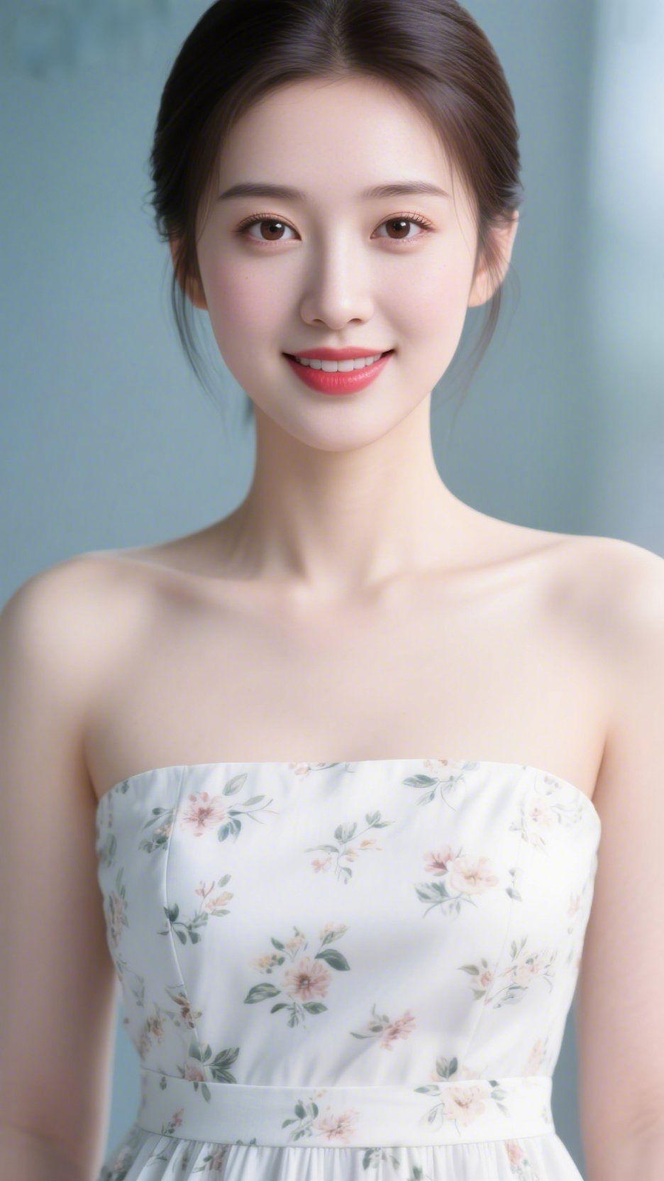 《浅衫裹春柔》 淡青底色像浸了晨雾,她立在这软意里,裙上的花似刚沾了春露的枝桠。 素衫裹着舒展的轻软,发鬓松挽着,几缕碎发垂在颈侧,唇色是浅揉的桃粉。没有繁复的修饰,只这一身浅花的柔,便将此刻时光酿成了裹着温意的甜——像推窗时轻撞满怀的风,柔得恰好,轻得刚好。 原来日常的美从不是刻意的妆点,是裙衫的软、笑意的真,落在浅淡光景里,就让这一瞬,像含了清意的云,舒展又温和。 浅衫春息 柔色日常