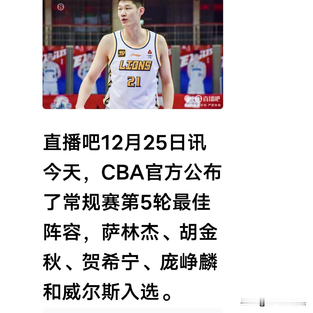 值得肯定!庞峥麟入选最佳阵容。 CBA官方公布CBA常规赛第五轮最佳阵容,新秀庞峥麟入选,另外4位球员分别是萨林杰,胡金秋,贺希宁和威尔斯。 1.后卫--庞峥麟 (客场对阵天津)狂砍34分6篮板4次助攻1次抢断。 2.分卫--贺希宁(客场对阵山东)贡献25分3篮板4次助攻4次抢断。 3.小前--威尔斯(主场迎战北控)贡献31分3篮板7次助攻2次抢断。 4.大前--胡金秋(主场迎战福建)贡献22分8篮板3次助攻1次抢断1次盖帽。 5.中锋--萨林杰 (客场对阵广州) 贡献32分10篮板1次助攻1比次抢断1次盖帽。 庞峥麟只是一名CBA选秀球员,能入选最佳阵容,个人能力值得肯定。