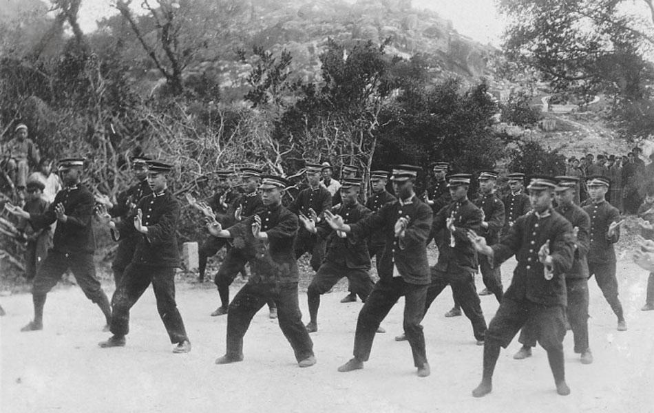20世纪30年代,国民革命军进行传统武术训练的真实历史影像,拍摄于野外训练场。