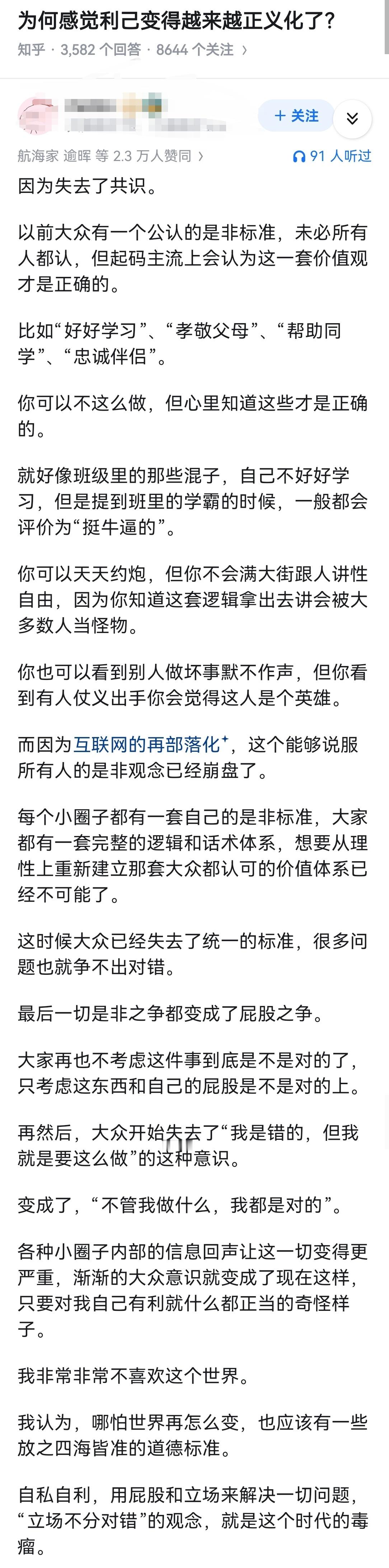为何感觉利己变得越来越正义化了?