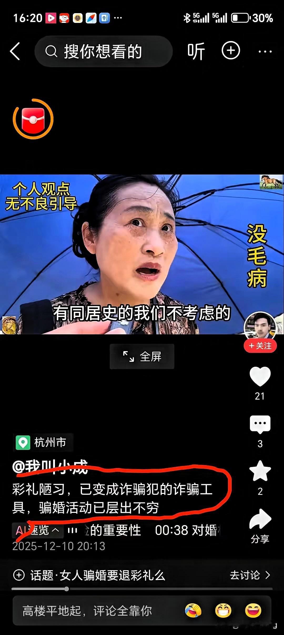 婚礼前一天被退婚,这事儿真不怪男方家“狠心”! 一女子婚礼前一天惨遭男友抛弃,原因竟是男方刚得知她曾与前任同居六年,女方父母上门求情还被轰了出来。这事听着扎心,但细想下来,还真怪不得男方家。 有人说都什么年代了还在意这个,可感情里的底线从来不分年代。男方家的做法看着不近人情,实则是家风家教的体现——他们有自己的婚恋原则,不会因为快要结婚就妥协将就。这就像处男要求女方是处女一样,你可以不认同,但不能否定人家有选择的权利。 你的身体你做主,这没错,但要不要和你共度一生,也是别人的自由。别拿“开放”当放纵的借口,更别用道德绑架强迫别人为你的过去买单。法律或许有相关规定,但感情里的选择从来不是靠法律来约束的。 婚姻的本质是价值观的匹配,要是在最核心的观念上达不成一致,就算勉强结婚,将来也会矛盾不断。男方家的果断,其实是对双方都负责的表现。你觉得在婚恋关系中,彼此的过去该不该成为选择的重要考量呢?
