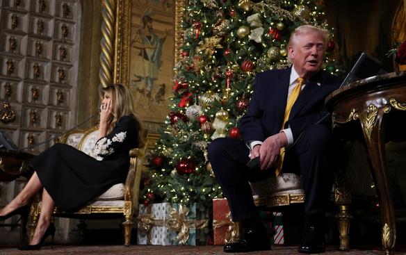 特朗普圣诞贺词是这样的 圣诞前夜,特朗普在佛罗里达州的海湖庄园内,通过Truth Social平台说:“祝所有人圣诞快乐,包括激进的左翼渣渣,他们正在尽一切可能摧毁我们的国家,但却失败得很严重。” “我们不再有开放的边界、男性参加女性运动、变性人人人平等,或者执法不力。我们所拥有的是创纪录的股市和401K计划,有几十年来最低的犯罪率,没有通货膨胀,昨天,GDP增长了4.3%,比预期好了两个百分点。” 的确,此前一天,美国商务部公布的数据显示,美国第三季度GDP增长4.3%,为两年来最高。不过,其国内采购物价指数上升3.4%,远高于第二季的2.0%。 从表情上看,这位领导人是快乐的,妻子陪伴在侧,两人当晚打了数十通电话。