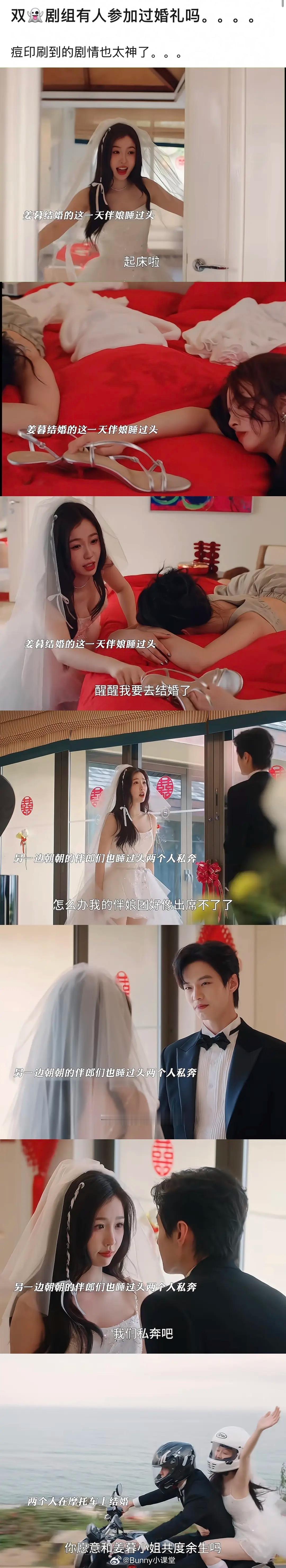 双轨剧组没人参加过婚礼吗?伴娘、伴郎睡过头,男女主骑摩托车私奔了……这是2025年的剧情吗