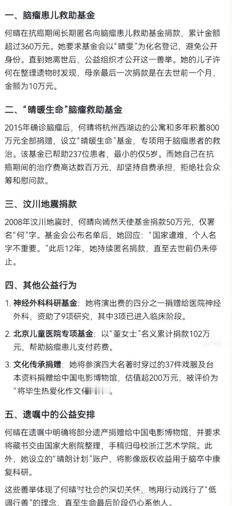 相关单位对不起她,到死都没能争取到应有的社保,多好多美的人啊!老天不长眼,坏人那么多,随便抓一个替她该有多好 这才是真正的大善人,做好事不留名。无人能超越的何晴一路走好,愿天堂不再有痛苦,会永远为你祈福