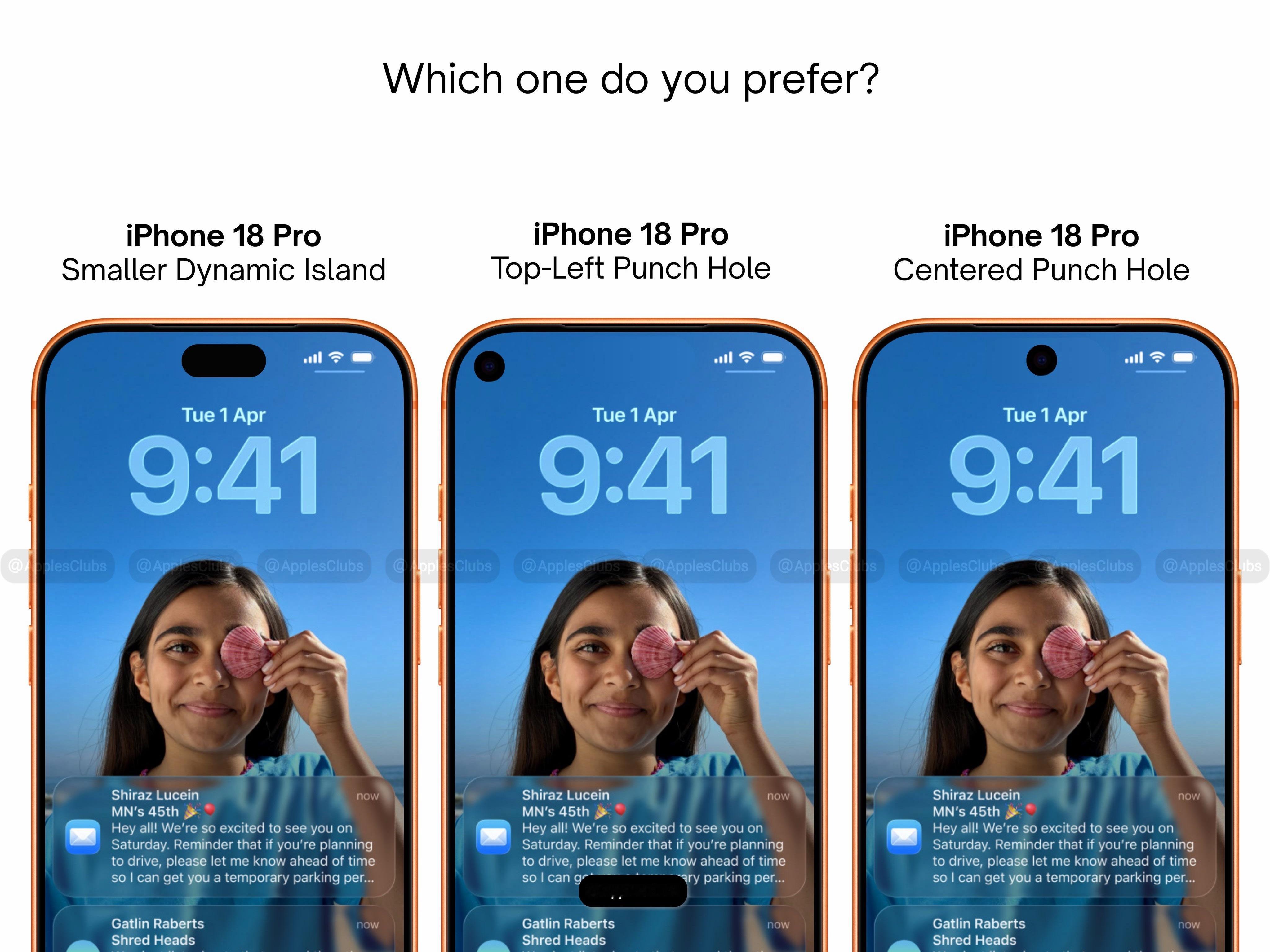 iPhone18Pro左上角挖孔设计我不接受iPhone 18 Pro采用挖孔屏,尤其是挖孔位置不居中!相比之下,缩小灵动岛才是最佳选择,然后20周年直接全面屏!