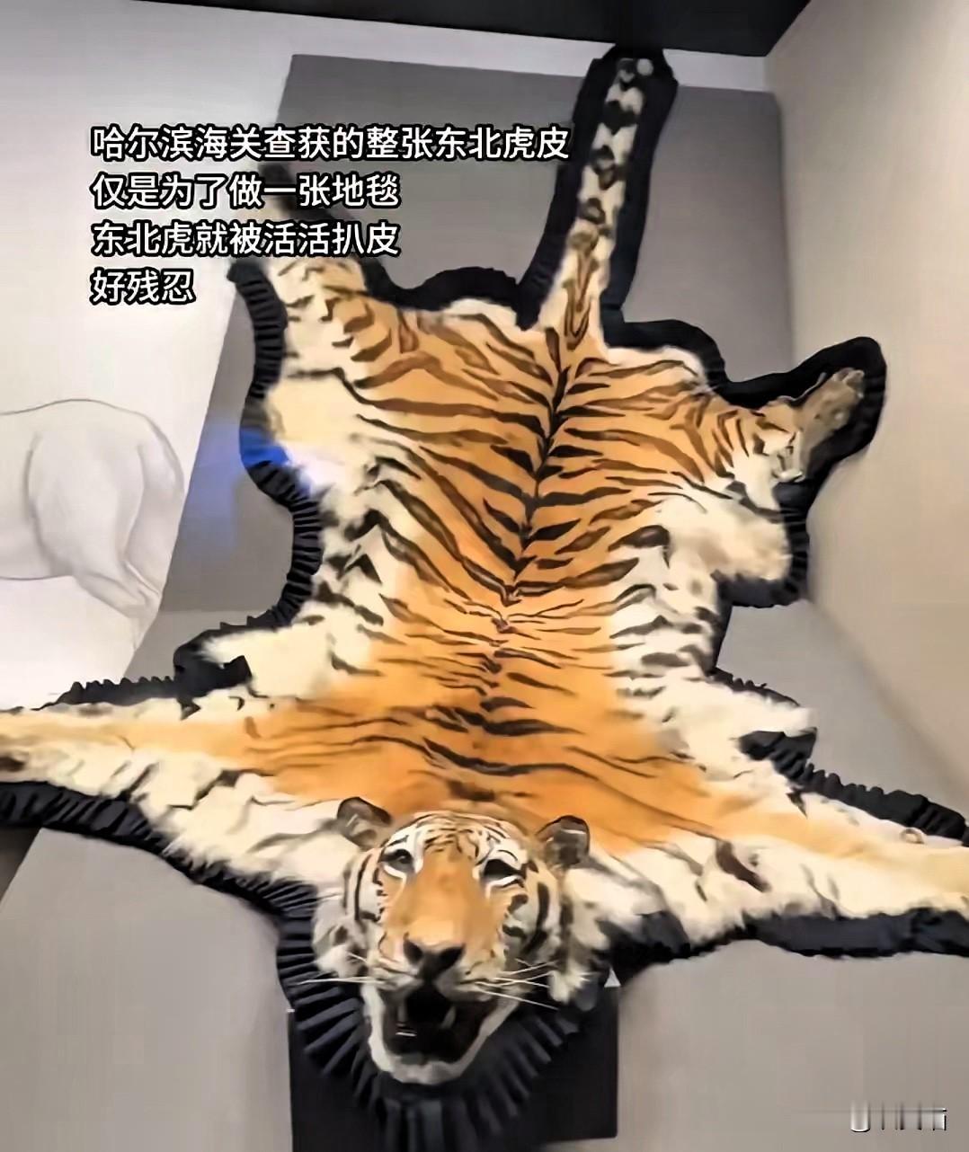 哈尔滨海关截获的那张虎皮, 毛色亮得刺眼,可“活剥”两个字, 看得人浑身发冷! 六个丧心病狂的家伙,把猎杀做成流水线,在他们眼里,濒危的东北虎根本不是生命,只是能换钱的“货”。明知这是国家一级保护动物,明知法律红线不能碰 我国对这类犯罪早就是“零容忍”,法律明确规定,猎杀、走私珍贵濒危野生动物,最高能判十年以上有期徒刑。他们赚的每一分钱都沾着血,毁掉的不仅是一条生命,更是整个生态的平衡。