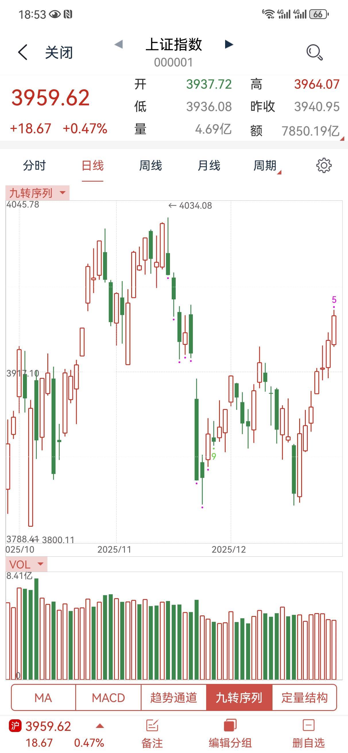 神一样的操盘手! 12月26日操盘笔记: 今天大盘温和上涨,六大指数全部红盘报收,个股整体表现也还不错。其实这段时间以来相信我判断的朋友们应该很愉快,因为几乎可以用精准来形容。我们简单回顾一下,十一月十二号提示风险,明确指出逢高减仓!大盘经历了近一个月的调整,而且在调整之前我也已经说过我的判断,这次调整空间大概在150-200点,没有系统性风险。事实上大盘从最高点调整了219点,而且我也明确指出大概率要二次探底,十二月十六日中午,我又发帖提示可以逢低介入,到今天大盘七连阳。这都不是胡说吧,有帖子为证。 明日操作计划:继续持股待涨。虽说大盘走得很平稳,但是目前来看并没有什么迹象显示要下跌,各指标包括形态都比较健康,唯一不足的是速度有点慢,量能也没放大多少,主要是因为资金都在抱团股里,场外资金又不敢进,这其实都不是太大问题,加速上涨了量能自然就放大了,赚钱效应好了资金自然就进来了。在大盘出现比较明显的转折信号之前,安心持股即可,没那么复杂,祝大家好运!