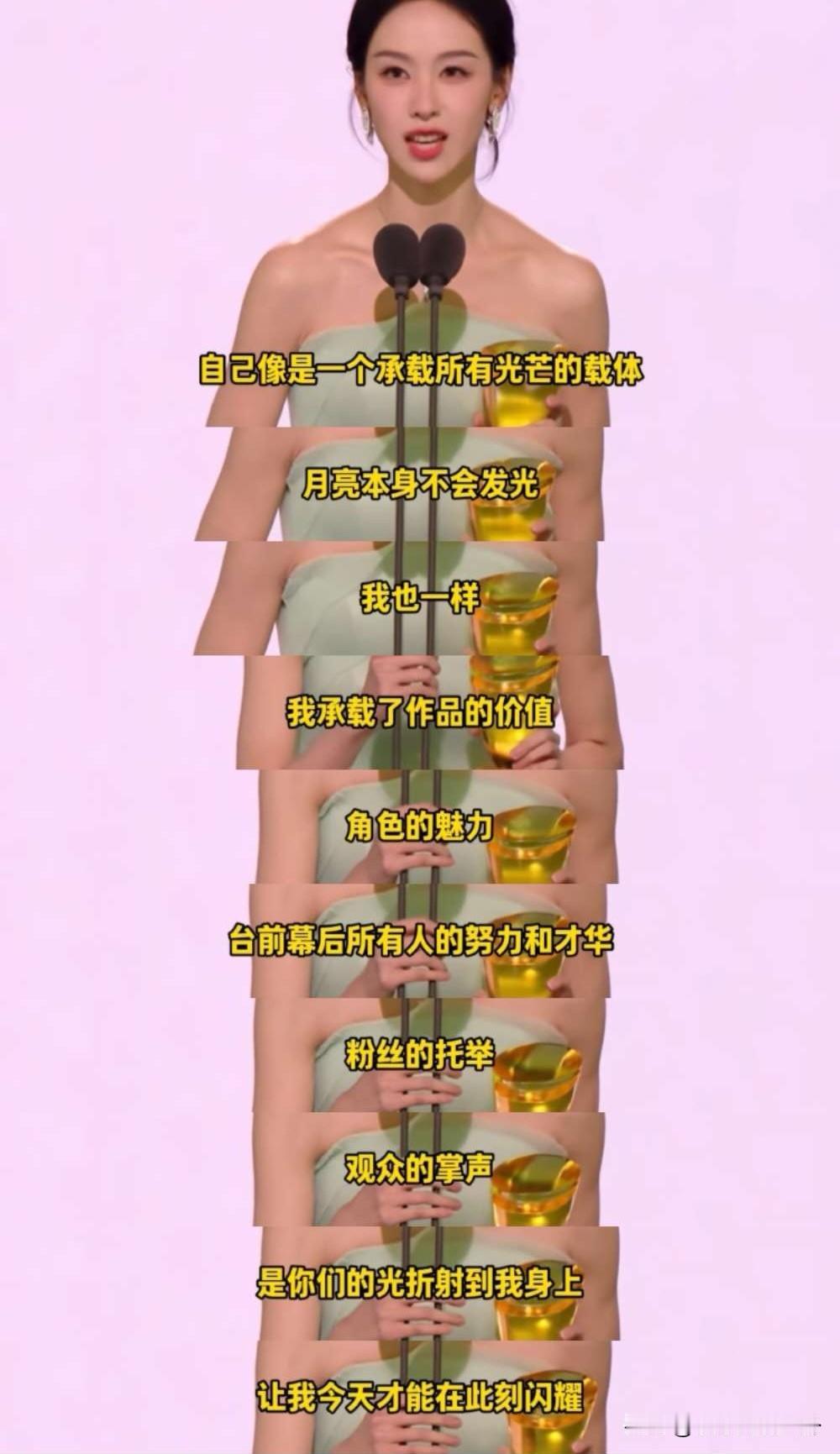 我觉得娱乐圈大家都是一等一的颜值身材,所以这个时候拼的就是内涵了,言之有物真的很拉好感。赵普思的发言就是“听君一席话,如听一席话”,陈都灵的发言让台下的梅婷和宋佳都感慨说得真好。