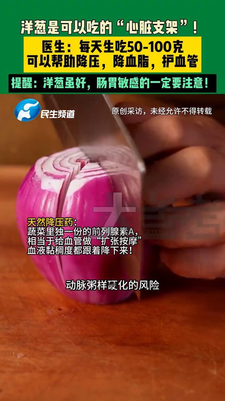 洋葱是可以吃的"心脏支架"!医生:每天生吃50-100克,可以帮助降压、降血脂、护血管。 河南省中医院治未病科副主任医师李欢。 提醒:洋葱虽好,肠胃敏感的一定要注意! 洋葱是非常常见的一种蔬菜,它富含的抗氧化物质槲皮素硫化物,它能对抗自由基,从而减少血管内皮细胞损伤,能够降低动脉粥样硬化的风险。吃有讲究,当然生食不破坏它这些抗氧化物质,建议每天也就是50-100克。