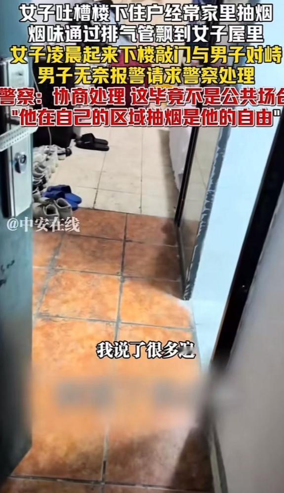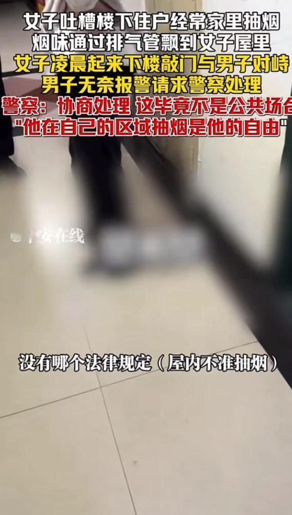小仙女真的无敌了!四川,男子在自己家里抽烟,楼上女邻居下来敲门,让男子不要抽了,说烟味通过排气管飘到她家里来。楼上男子都懵了,自己在家里抽烟,女子还能管的着?于是男子让女子报案,可民警来了以后,让女子傻眼了! 事情是这样的,住在楼上的一位女住户,凌晨五点半被憋醒了,不是因为做了噩梦,而是一股刺鼻的烟味顺着厕所的排气管钻进了家里,这烟味飘得满屋子都是,把她的起床气瞬间勾了起来,积压已久的火气一下子就爆发了,在她看来这烟味就是无形的侵犯,直接影响了她的“呼吸权”,必须找源头算账。 她一猜就知道,烟味肯定是楼下男邻居家飘上来的,其实这也不是第一次因为抽烟的事儿起摩擦了,之前她就找过这位男邻居好几次,在她的逻辑里,公共烟道是大家共用的,但绝对不能当成输送二手烟的通道,楼下抽烟影响到她,就是没道理。 可在楼下男邻居眼里,这纯属没事找事,自己在自家抽烟,碍着谁了?两人的矛盾早就悄悄攒下了,就等一个爆发的契机。 这次被烟味吵醒,女住户再也忍不住了,穿着睡衣就冲下楼,对着男邻居家的门一顿猛砸,那力道恨不得把门板砸穿门,刚开了一道缝,她的咆哮声就冲了进去,劈头盖脸就把男邻居骂了一顿,还带着不少难听的话,她的要求特别直接,不管你在自家哪个地方抽烟都得停下!就因为烟味会飘到楼上,侵犯了她的领地。 楼下的男邻居被这突如其来的砸门声和骂声惊醒,整个人都是懵的,刚睡醒就被人指着鼻子骂,换谁都得窝火,可他还是耐着性子解释,说自己是在房间里抽的烟,根本没在厕所,按说不该顺着排气管飘上去,可他这话在愤怒的女邻居听来,纯属狡辩,满屋子的烟味就是铁证,怎么解释都没用。 两人就这么僵持着,女邻居不依不饶,非要男邻居保证以后再也不抽烟,男邻居也是又气又无奈,最后实在没办法,抛出了一句气话:“哪条法律规定不能在自己家里抽烟?你要是觉得我违法了,尽管去报案,让警察来评理!”他本来以为这话能把女邻居劝退,毕竟谁都知道,在自己家里抽烟是个人自由,没哪个法律会禁止。 可让男邻居没想到的是,他这句气话竟然正中女邻居下怀。女邻居当场就掏出手机报了警,语气特别硬气,仿佛已经胜券在握,就等着民警来“治服”这个“不讲理”的男邻居,在她的预想里,民警来了之后,肯定会站在她这边,批评男邻居不该抽烟影响别人,还得逼着男邻居给她道歉。 很快民警就赶到了现场。了解清楚事情的来龙去脉,又在两家勘察了一圈之后,给出的结论却让女邻居彻底傻眼了,民警说得很清楚,这是私人住宅,不是商场、车站那种公共场所。 在自己拥有产权的私密空间里抽烟,不管是法理上还是情理上,都属于个人自由的范畴,警方既没有权力强制没收男邻居的烟,也没办法对他进行任何处罚,唯一能做的,就是劝两人好好协商,互相体谅。 这一盆冷水浇下来,女邻居瞬间就蔫了,之前的嚣张气焰全没了,她怎么也想不通,自己明明是被二手烟骚扰的受害者,怎么到了民警这里,反而成了无理取闹的一方?这种巨大的心理落差让她特别委屈,转头就把这件事发到了网上,想让网友帮她评评理,用舆论压力逼男邻居让步。 可网友的反应并没有像她期待的那样一边倒支持她,反而有不少人看完之后,都在吐槽她“管太宽”“小仙女真的无敌了”,有网友说能理解被二手烟困扰的心情,但人家在自己家里抽烟真没法治,总不能不让人在自家自由活动吧?还有人说要是连邻居在家抽烟都要管,那估计只能去买独栋别墅住了,不然住公寓楼难免有各种邻里摩擦。 还有些懂技术的网友给出了实在建议,说与其大清早砸门骂人,不如花几十块钱给自己家的烟道装个止逆阀,从物理上解决烟味倒灌的问题,这比吵架管用多了,当然也有少数网友同情她,觉得二手烟确实有害,男邻居要是能多体谅一下楼上邻居,稍微注意一下抽烟的位置和时间,也不会闹到这一步。 住公寓楼就是要互相迁就。物理上的止逆阀好装,但人心之间的“止逆阀”难开,有时候多一点体谅,少一点戾气,邻里之间就能少很多麻烦,毕竟比起法律规定的底线,人与人之间的温情和包容,才是住得舒服的关键。 (信息来源:封面新闻 2025年12月23日)