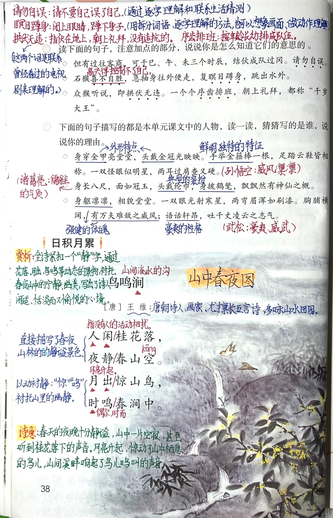 五年级语文 课堂笔记 小学语文课堂笔记 语文笔记 语文 课堂笔记 备课 语文园地二 鸟鸣涧